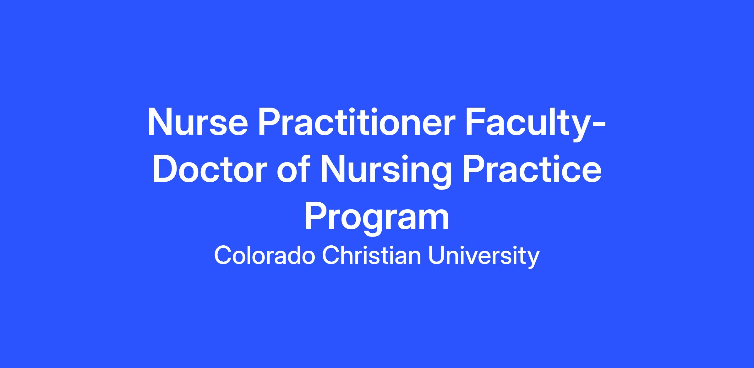 Colorado Christian University’s School of Nursing and Health Professions is seeking a dedicated, full-time faculty member to teach in our Family Nurse Practitioner (FNP) and Adult-Gerontology Primary Care Nurse Practitioner (AGPCNP) Doctor of Nursing Practice (DNP) tracks. The ideal candidate will bring clinical expertise in family practice, a proven record of strong graduate-level teaching, and a heart for mentoring students both professionally and spiritually. If you thrive in a collaborative environment, value excellence in nursing education, and desire to integrate faith with advanced practice, we invite you to apply to join our team.