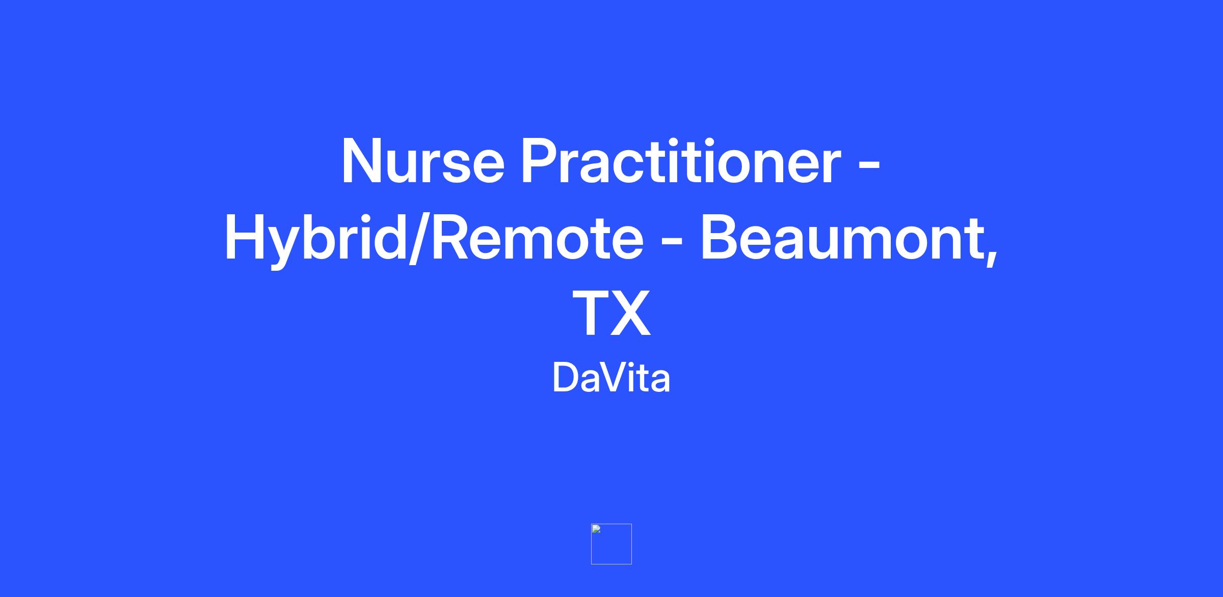 Are you a Nurse Practitioner ready to transform lives and make a real difference for patients with complex kidney conditions? DaVita IKC is looking for a passionate NP to join our team in Beaumont, TX, helping patients navigate a challenging healthcare system while receiving holistic, integrated care.