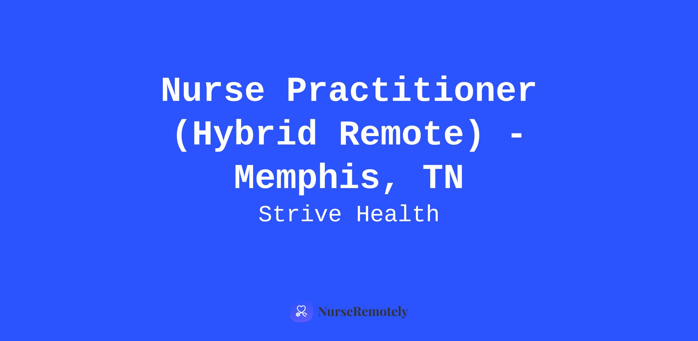 This position reports to the Lead Nurse Practitioner and follows a hybrid schedule: two days per week conducting in-home patient visits throughout the Memphis area, and three days per week providing virtual care to support patients remotely.
