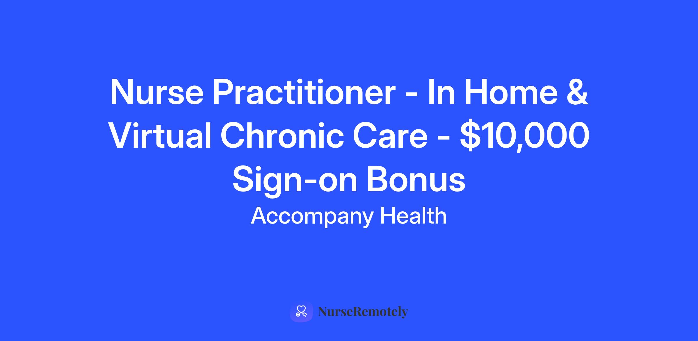 We embrace diversity and believe it creates a healthier atmosphere: Accompany Health is an Equal Employment Opportunity employer and all qualified applicants will receive consideration for employment without regard to race, color, religion, sex, age, national origin, protected veteran status, disability status, sexual orientation, gender identity or expression, marital status, genetic information, or any other characteristic protected by law.