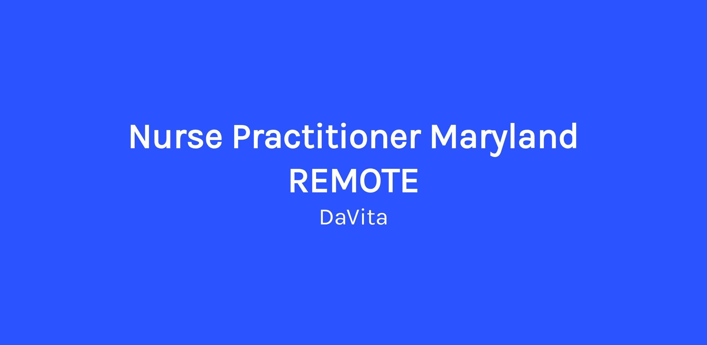REMOTE in Maryland: work-from-home (telehealth) and occasional travel to meetings. Maryland NP License needed.