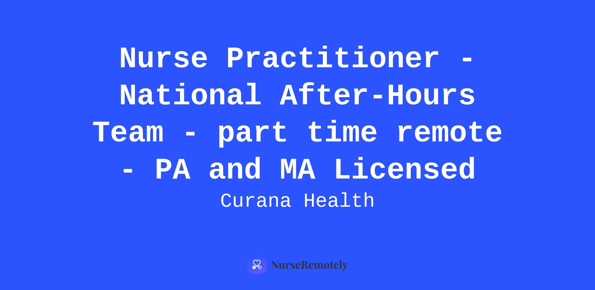 The National After-Hours Call Team is responsible for providing telephonic care and direction to residents and facility staff during overnight, weekend, and holiday hours. This role is responsible for the delivery of medical care to Curana patients across multiple states in order to ensure high quality continuity of care and treatment in place when possible.