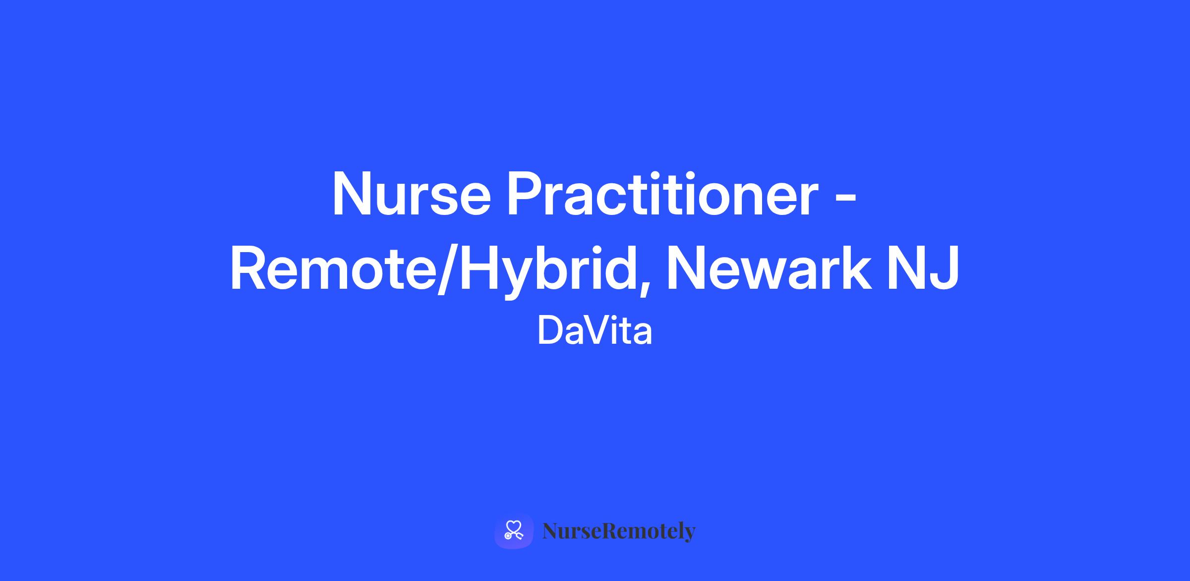 10/02/2025262 Broad St, Newark, New Jersey, 07104-3809, United States of AmericaDaVita Integrated Kidney Care (IKC) is looking for a Full-Time Nurse Practitioner (NP) to join us in Newark, NJ. Must live locally.