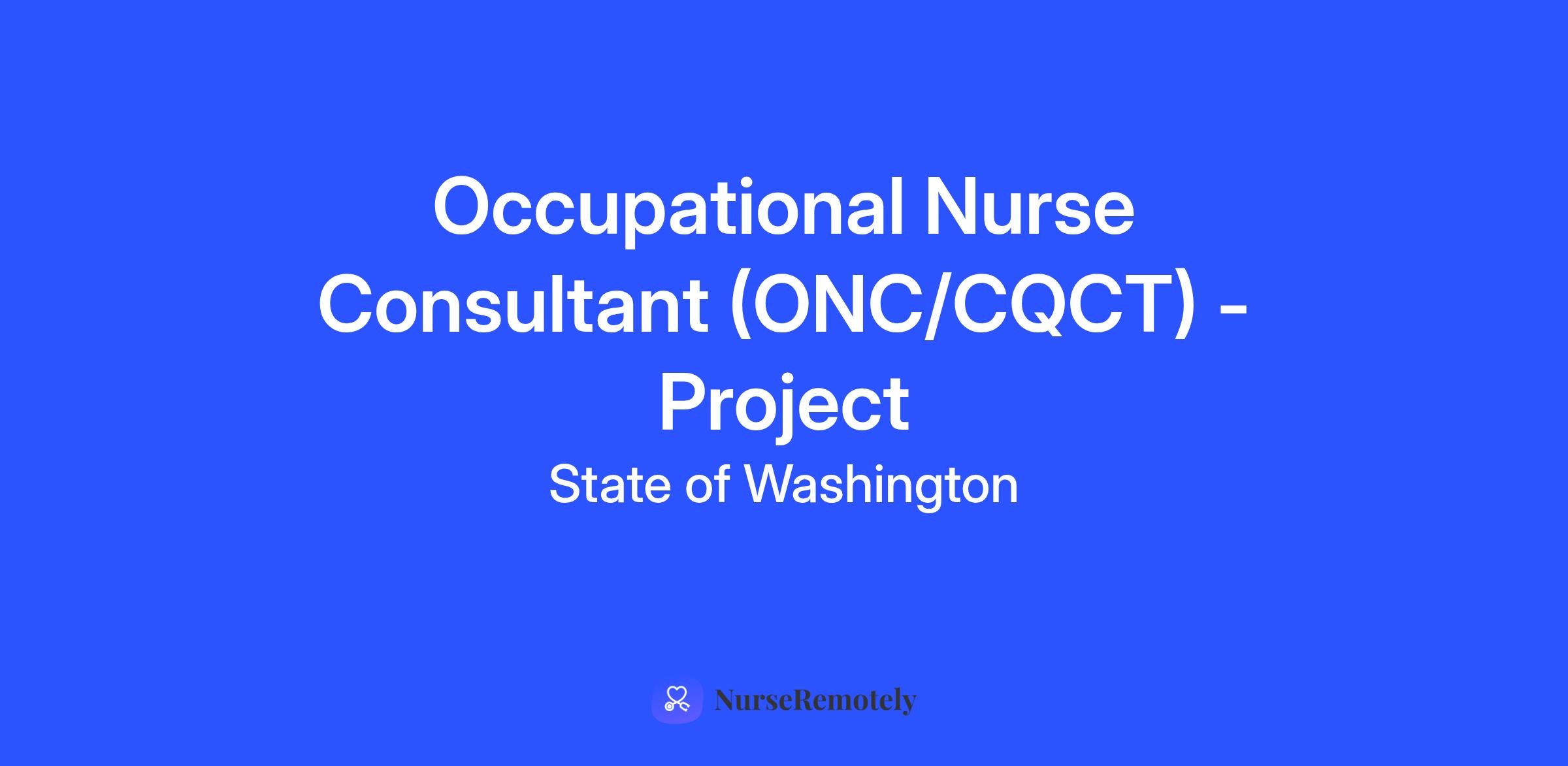 Occupational Nurse Consultant (ONC/CQCT) - Project