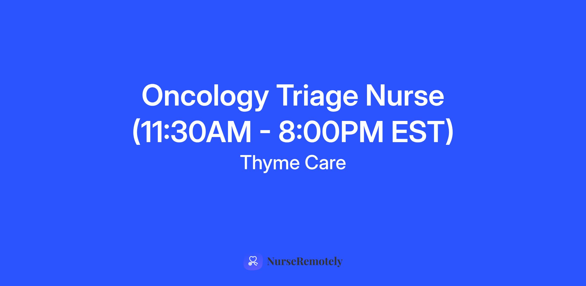 Thyme Care Inc., the management company to Thyme Care Medical PLLC, is the employing entity with your duties to be performed for Thyme Care Medical PLLC, a medical practice, and its patients. As a Thyme Care Oncology Nurse Navigator, you'll be a vital clinical resource for our members and their care network, offering triage, support, and education during their cancer journey via phone, email, and video communication. Under the guidance of our Nurse Team Lead, you'll conduct comprehensive clinical assessments, oversee member health, and facilitate end-of-life care discussions. Your main objective will involve actively engaging with members, addressing clinical issues, and efficiently managing any escalations that arise. The shift for this position is 11:30AM - 8:00PM EST.