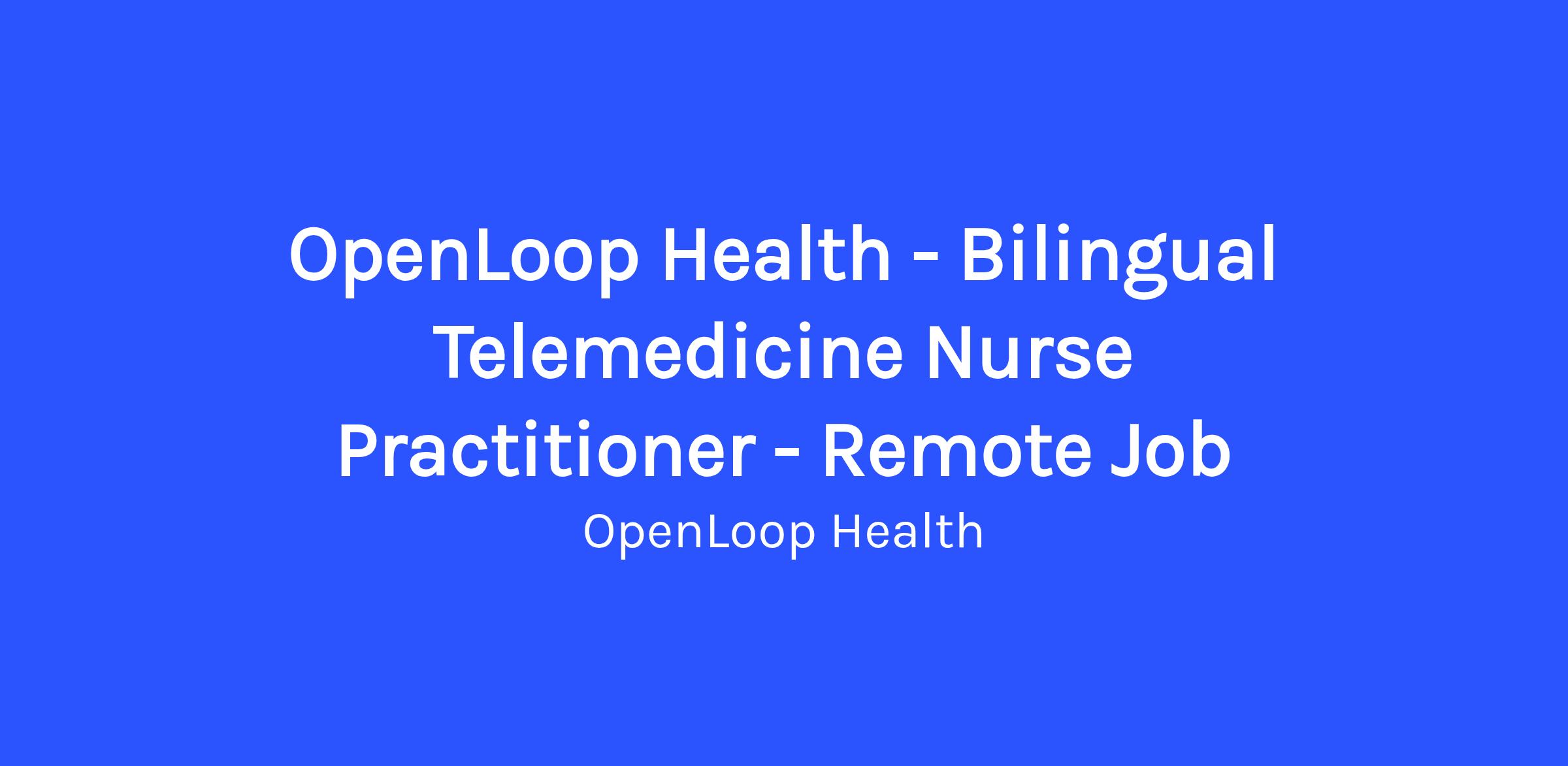 OpenLoop Health - Bilingual Telemedicine Nurse Practitioner - Remote Job