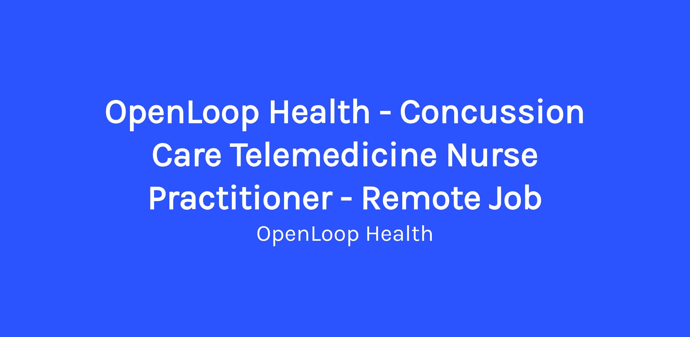OpenLoop Health - Concussion Care Telemedicine Nurse Practitioner - Remote Job