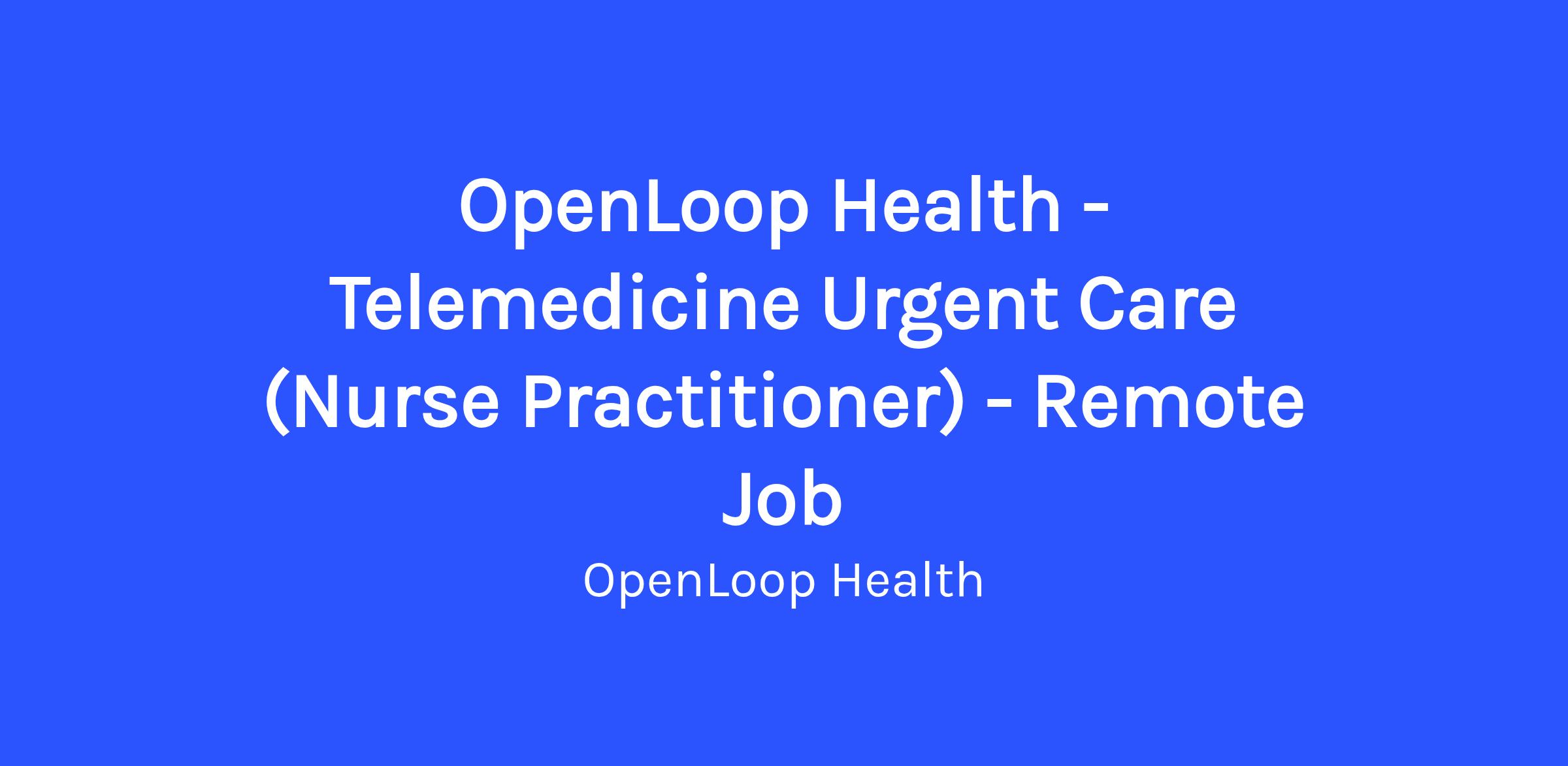 OpenLoop Health - Telemedicine Urgent Care (Nurse Practitioner) - Remote Job