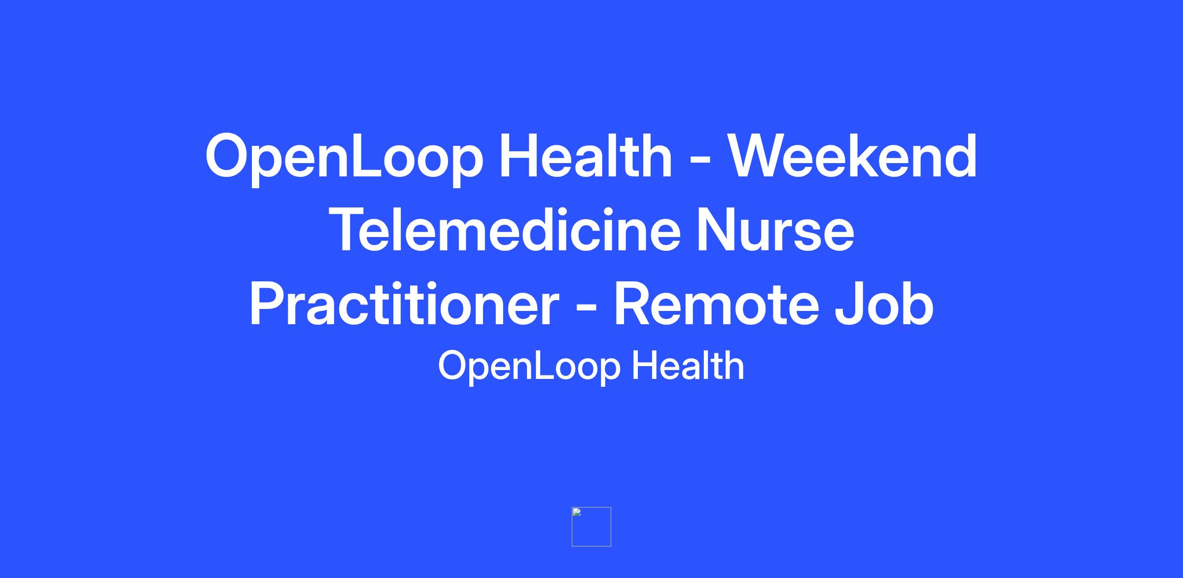OpenLoop Health - Weekend Telemedicine Nurse Practitioner - Remote Job
