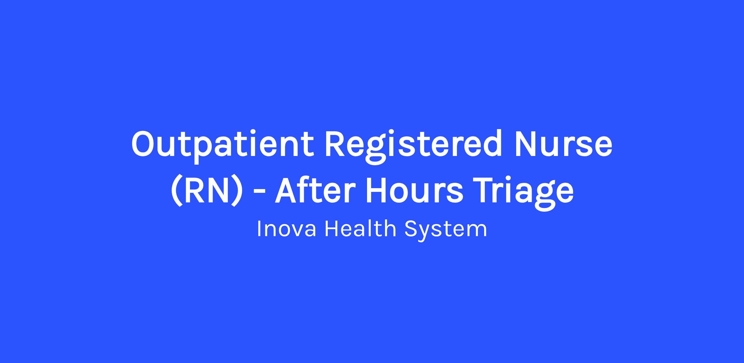 Inova Primary Care - Anytime Program is looking for a dedicated Outpatient Registered Nurse (RN) to join the team. This role will provide Virtual On Demand care/triage when practices are closed – starting 5pm-5am; includes various weekends and holidays.