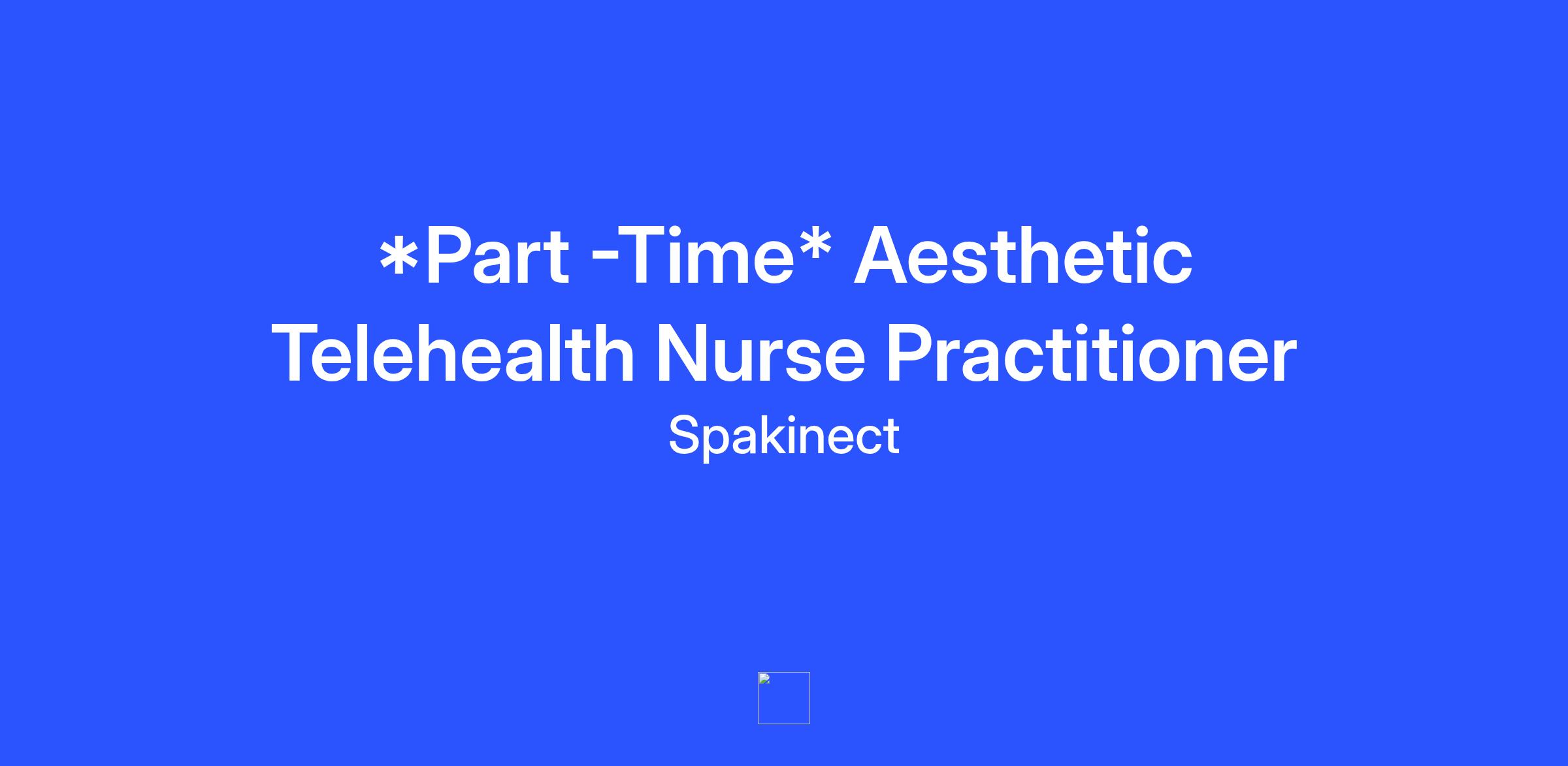 This is a remote position.<\/p> *This role is for a remote PART\-TIME position with an anticipated start date as early as February 1st, 2026*<\/span><\/span><\/u><\/b><\/span><\/span><\/i><\/span><\/span><\/span><\/span><\/span><\/span> Are you an Aesthetic Nurse Practitioner seeking a new and exciting growth opportunity in a remote environment? Spakinect is a successful and growing business in the Aesthetic Telehealth arena. With hundreds of clients located in Arizona,<\/i> California, Colorado, Delaware, Florida, Georgia, Hawaii, Idaho, Illinois, Indiana, Kansas, Kentucky, Maine, Maryland, Massachusetts, Michigan, Minnesota, Missouri, Montana, Nevada, New Hampshire, New Jersey, New Mexico, New York, North Carolina, Ohio, Oklahoma, Oregon, Pennsylvania, Tennessee, Texas, Utah, Virginia, Washington, Washington D.C., Wisconsin, and Wyoming<\/i><\/span><\/span><\/span><\/span>, the company is continuously growing and would truly benefit to bring on another part\-time<\/span><\/span> <\/span><\/span><\/b>Aesthetic Nurse Practitioner. <\/span><\/span><\/span><\/span><\/span><\/span> To be considered for this opening, you must have <\/i>prior aesthetic medicine experience, <\/i><\/b><\/b>hold active licenses in<\/b> <\/b><\/b><\/i>California <\/b>and<\/b><\/u> Texas<\/b>, AND <\/i>hold a MINIMUM of eight (8)<\/u> <\/b><\/b>of the following state licenses: AZ, FL, GA, IL, IN, KY, MA, MN, NC, NM, NV, NY, OR, PA, TN, VA, WA, WI. <\/i><\/b><\/b>Applicants may be considered if CA <\/i><\/span><\/span><\/span><\/span>and<\/span><\/span><\/u><\/span><\/span><\/i><\/b> TX licenses are in application status in addition to having previous aesthetic medicine experience. <\/i>The starting base rate for this position is $62\/hour, however candidates with additional desirable licensure and experience may be eligible to receive a higher starting rate.<\/span><\/span><\/span><\/span><\/span><\/span> Deliver thorough, efficient, and exceptional healthcare by reviewing health histories, screening for any contraindications to treatment, and providing treatment plan recommendations for desired aesthetic treatments. <\/span><\/span><\/span><\/span> Displays superior customer service by addressing client and patient care concerns, answering clinical questions, and providing medical guidance as necessary.<\/span><\/span><\/span><\/span> Demonstrates behavior that is kind, compassionate, polite, friendly, and respectful towards patients, clients, and co\-workers.<\/span><\/span><\/span><\/span> Effectively communicates with office staff regarding any administrative issues that arise in a timely manner; demonstrates accountability. <\/span><\/span><\/span><\/span> Documents electronically using an Electronic Health Record (EHR) system to submit completed GFEs in real\-time. <\/span><\/span><\/span><\/span> Exhibits the ability to troubleshoot basic technical problems to resolve any potential issues, reaches out appropriately for further assistance when needed. <\/span><\/span><\/span><\/span> Adheres to company guidelines and policies, completes all required training, attends continuing education opportunities for growth and development.<\/span><\/span><\/span><\/span> Improves productivity and efficiency by developing and implementing standards and processes.<\/span><\/span><\/span><\/span> Fosters and embraces best care practices.<\/span><\/span><\/span><\/span> Demonstrates Spakinectâs company core values and mission. <\/span><\/span><\/span><\/span> Performs other duties as assigned.<\/span><\/span><\/span><\/span> Master's degree from an accredited college\/university or equivalent with related experience in the aesthetic industry. <\/span><\/span><\/span><\/span> Aesthetic Industry Experience<\/span><\/span><\/b><\/span><\/span> Prior experience and in\-depth knowledge of aesthetic medicine and treatments offered by industry. Knowledge of legal regulations and best practices in healthcare. Up to date with ever\-changing standards in telehealth and aesthetic administration.<\/span><\/span><\/span><\/span> Licensing<\/span><\/span><\/b><\/span><\/span> Qualified candidates must hold active licenses in <\/i>California and<\/u> Texas <\/b><\/b>and hold a MINIMUM of eight (8)<\/u> <\/b><\/b><\/i>of the following state licenses: