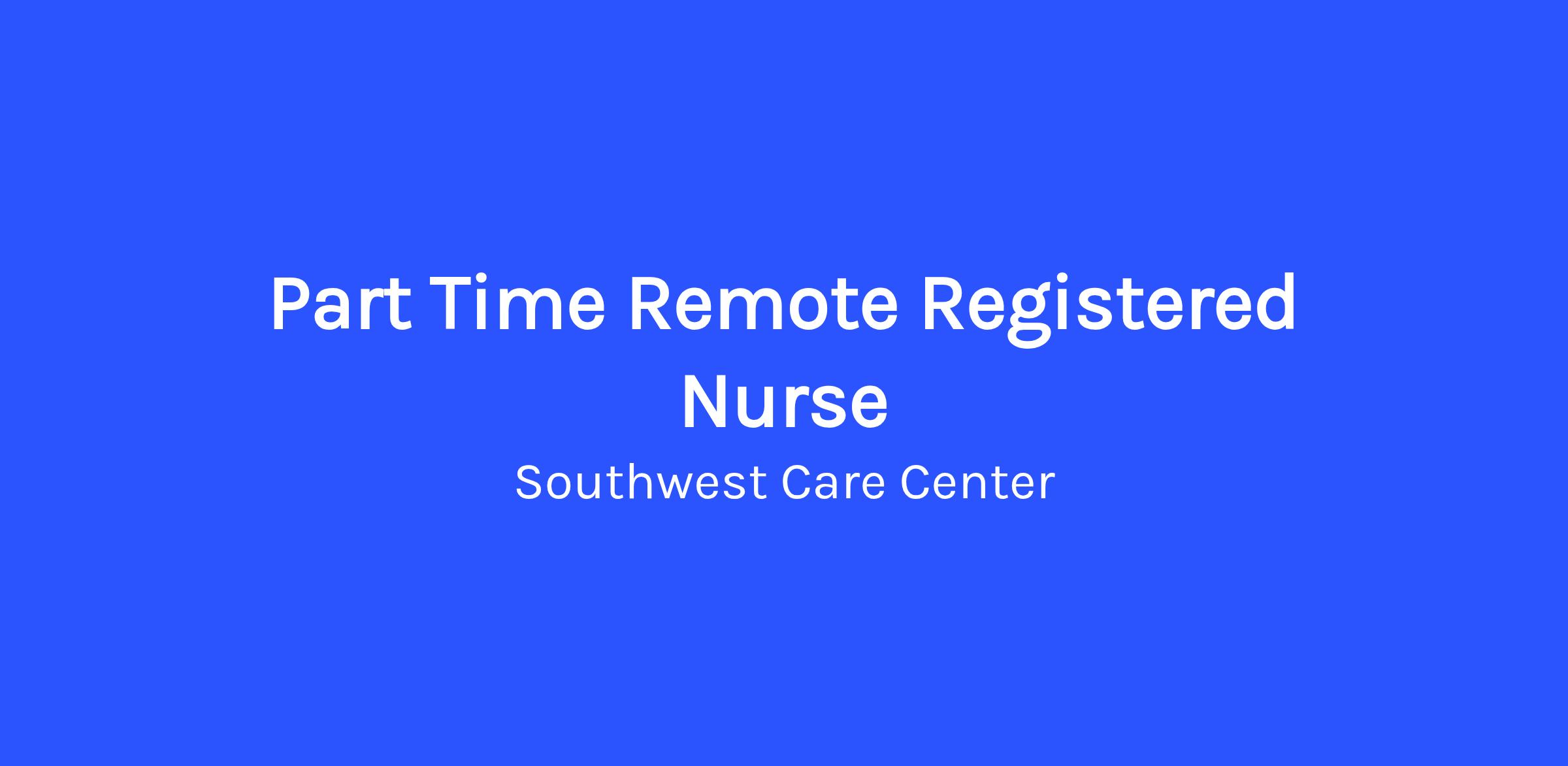 Southwest Care Center is currently seeking a remote part-time RN Care Coordinator. This role will provide occasional on site in clinic support, therefore candidate must reside in the local market area of Albuquerque or Santa Fe, New Mexico. The primary functions of the RN role will include care plan management, triage, and inbox management.