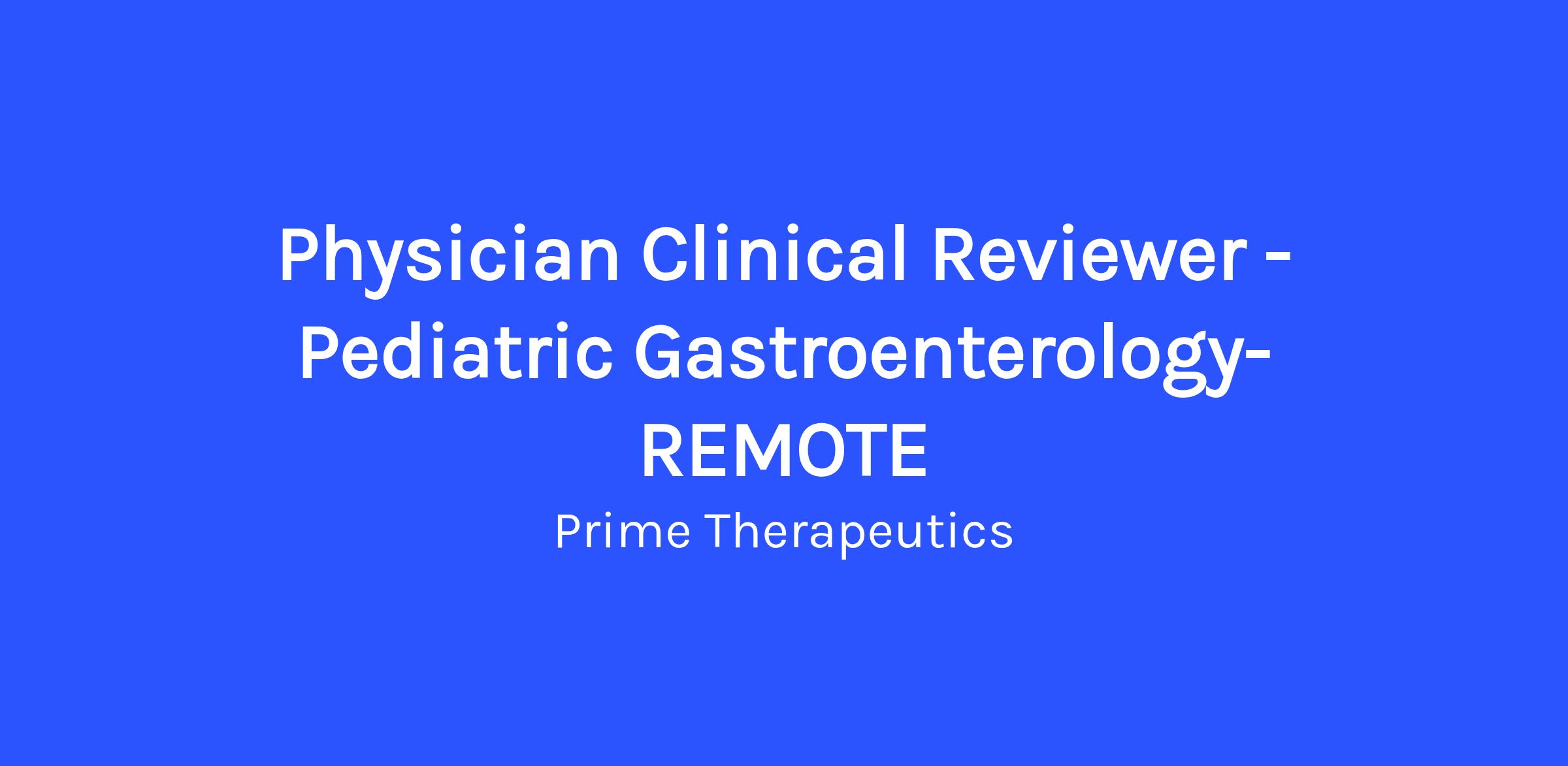 Physician Clinical Reviewer - Pediatric Gastroenterology- REMOTE