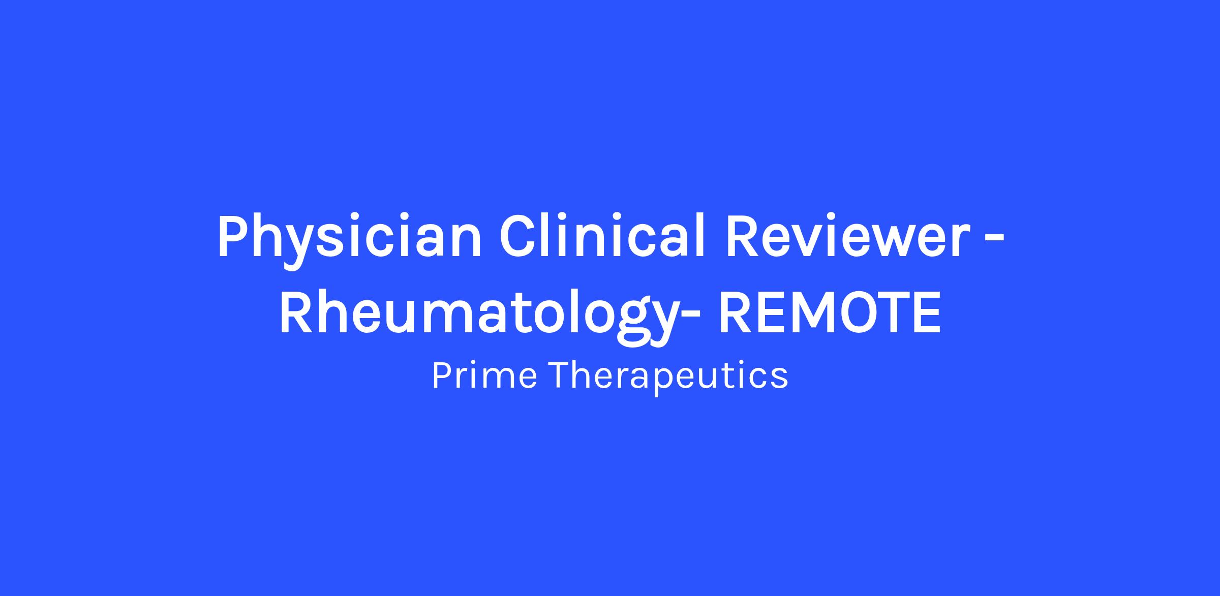 Physician Clinical Reviewer - Rheumatology- REMOTE