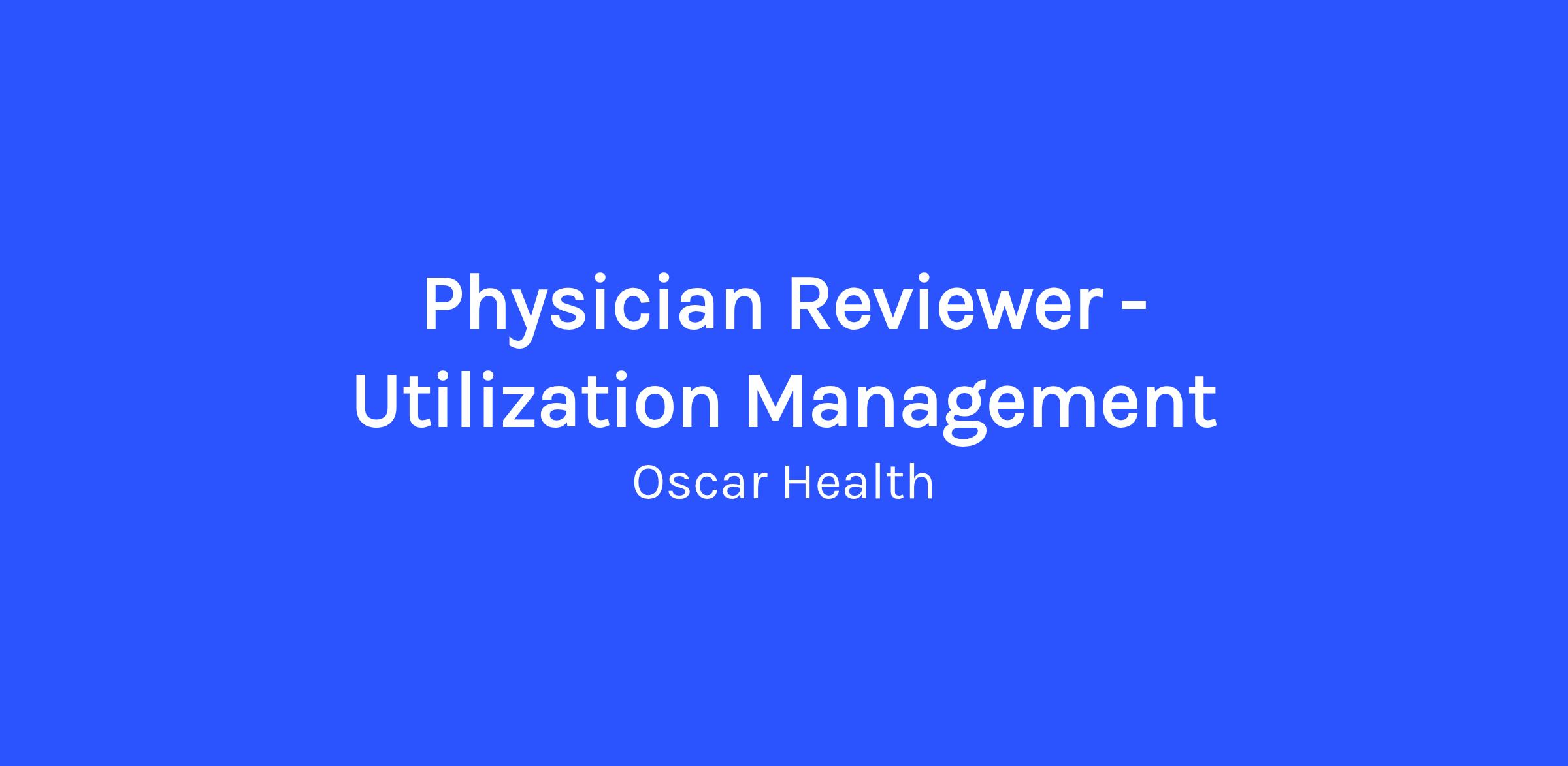 Hi, we're Oscar. We're hiring a Physician Reviewer to join our Utilization Management team.