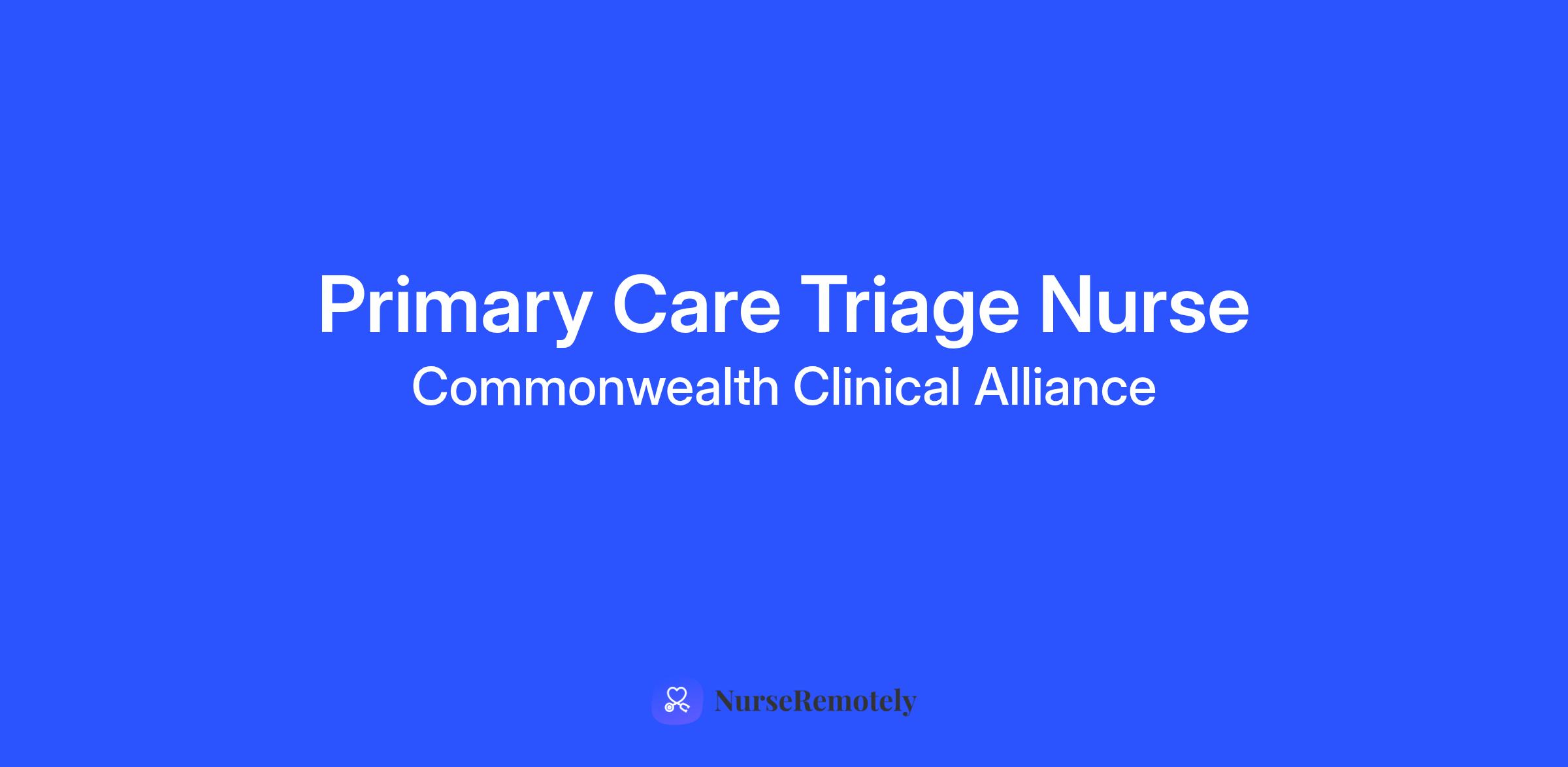 The Primary Care Triage Nurse functions as a key part of the primary care team through health maintenance and chronic disease management, care coordination, and triage within the RN scope of practice. The Primary Care Triage Nurses utilizes the practice’s defined protocols and workflows to assess patient needs, decide on their disposition, dispense care advice, and escalate needs to other team members where appropriate. The Primary Care Triage Nurse acts as the patient’s primary point of clinical contact in the practice, and takes all incoming calls when routed by admin. The Primary Care Triage Nurse makes outbound calls in order to do ED, hospital, facility discharge checks, follow up after an acute concern, or help the team close care gaps, manage chronic diseases, or coordinate care. The Primary Care Triage Nurse also acts as the primary liaison with Care Partnership when communicating care management needs. The Primary Care Triage Nurse may assist the APC (Advanced Practice Clinician) or physician with lab orders, referrals, and scheduling urgent care visits when needed. The Primary Care Triage Nurse reports to the Triage Nurse Supervisor and is under the general supervision of the Primary Care Manager and Clinical Director.