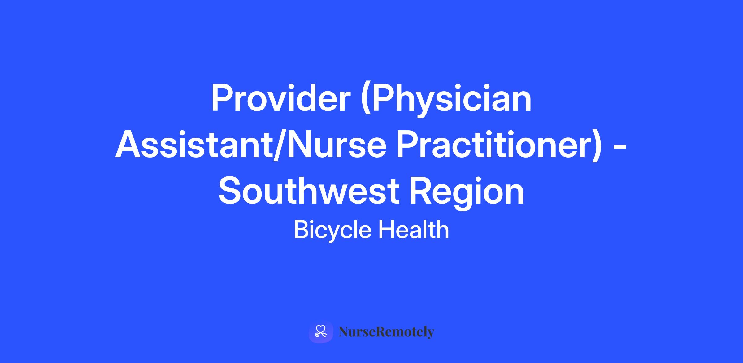 The Provider position at Bicycle Health is a remote full-time addiction medicine clinical position with responsibility for the continuity care of a panel of adult patients under care primarily for opioid use disorder. The Nurse Practitioner or Physician Assistant will assess new patients presenting for telemedicine-based care of opioid use disorder, determine appropriateness of enrollment in our care setting, and manage their continuity OUD treatment from initial induction through the duration of their care. The Nurse Practitioner also addresses co-occurring mental health conditions directly when appropriate, and also via referral and care-coordination with outside providers. The NP/PA participates actively in regular clinical team meetings and quality improvement activities, collaborates with our program physicians and therapists, and reports to the regional medical director.