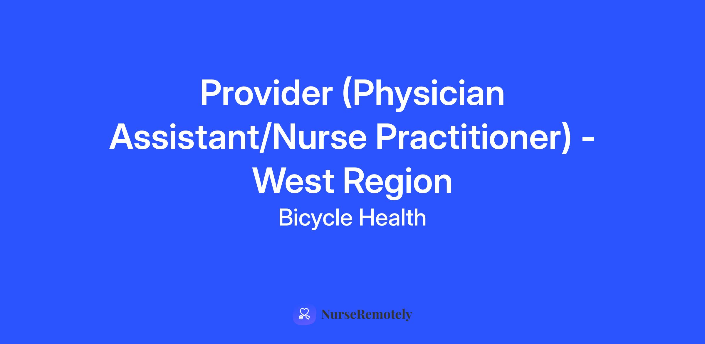 The Provider position at Bicycle Health is a remote full-time addiction medicine clinical position with responsibility for the continuity care of a panel of adult patients under care primarily for opioid use disorder. The Nurse Practitioner or Physician Assistant will assess new patients presenting for telemedicine-based care of opioid use disorder, determine appropriateness of enrollment in our care setting, and manage their continuity OUD treatment from initial induction through the duration of their care. The Nurse Practitioner also addresses co-occurring mental health conditions directly when appropriate, and also via referral and care-coordination with outside providers. The NP/PA participates actively in regular clinical team meetings and quality improvement activities, collaborates with our program physicians and therapists, and reports to the regional medical director.
