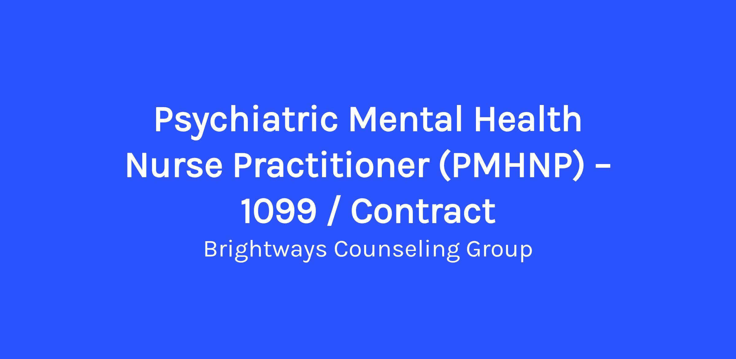 Psychiatric Mental Health Nurse Practitioner (PMHNP) – 1099 / Contract