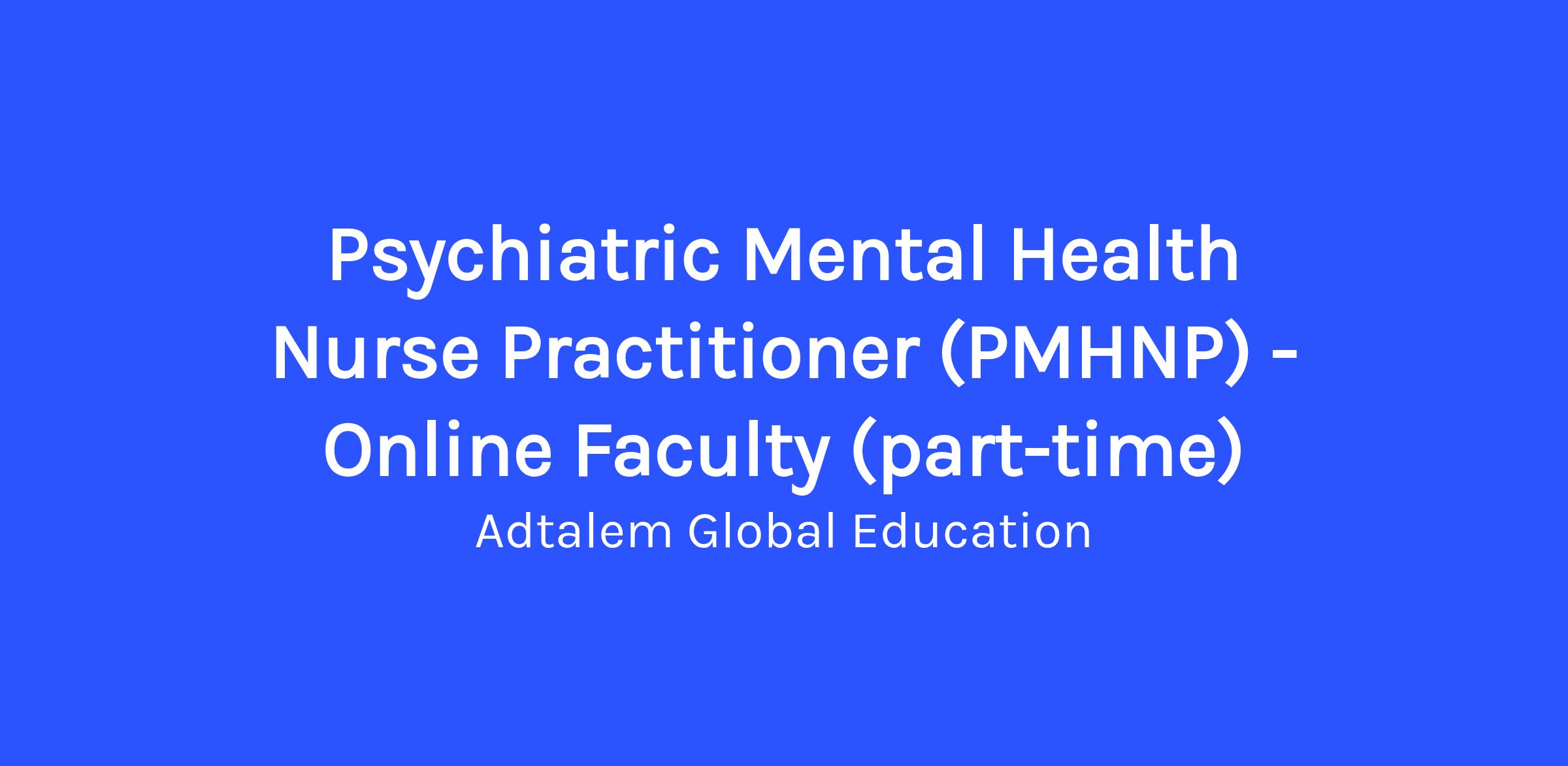 Chamberlain University College of Nursing is seeking Online Faculty (part-time) for our Master of Science in Nursing Psychiatric Mental Health Nurse Practitioner (MSN PMHNP) Program. We build long-term relationships with superior educators who are experts in their field and committed to providing the finest in practitioner-focused education.