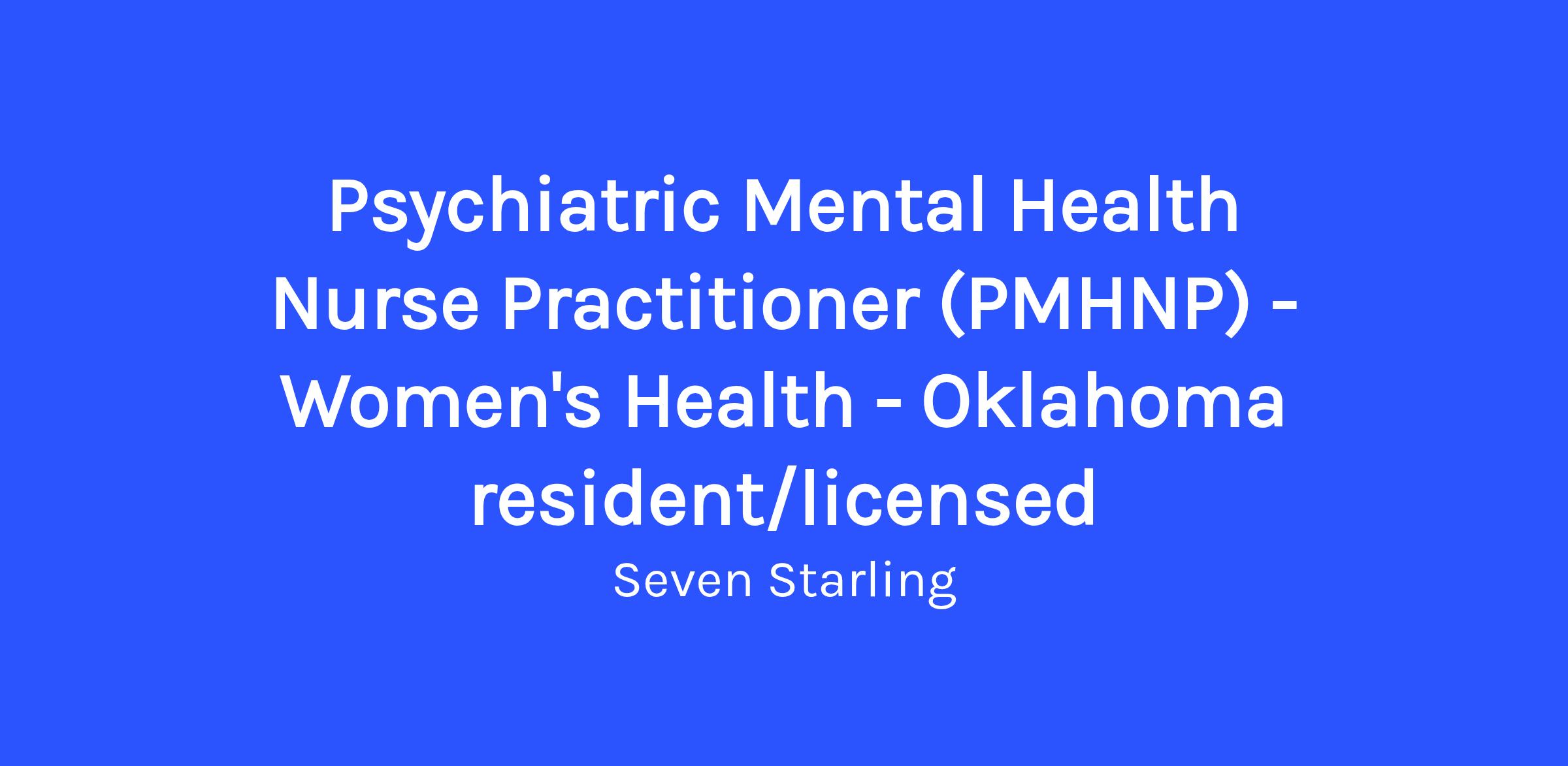 - Active Board Certified OK (Oklahoma) PMHNP license in good standing