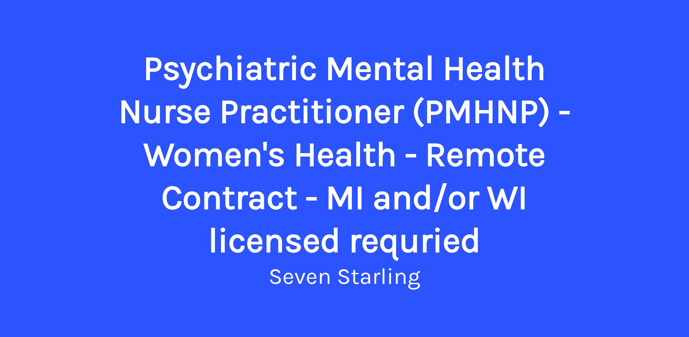 We are seeking a compassionate and experienced PMHNP to join our growing, mission-driven organization focused on providing high quality holistic mental health care to the perinatal population. You should also be comfortable managing patients throughout reproductive life stages including menopause. You will work with our clinicians and the Director of Medical Operations in this fully remote, contract position.