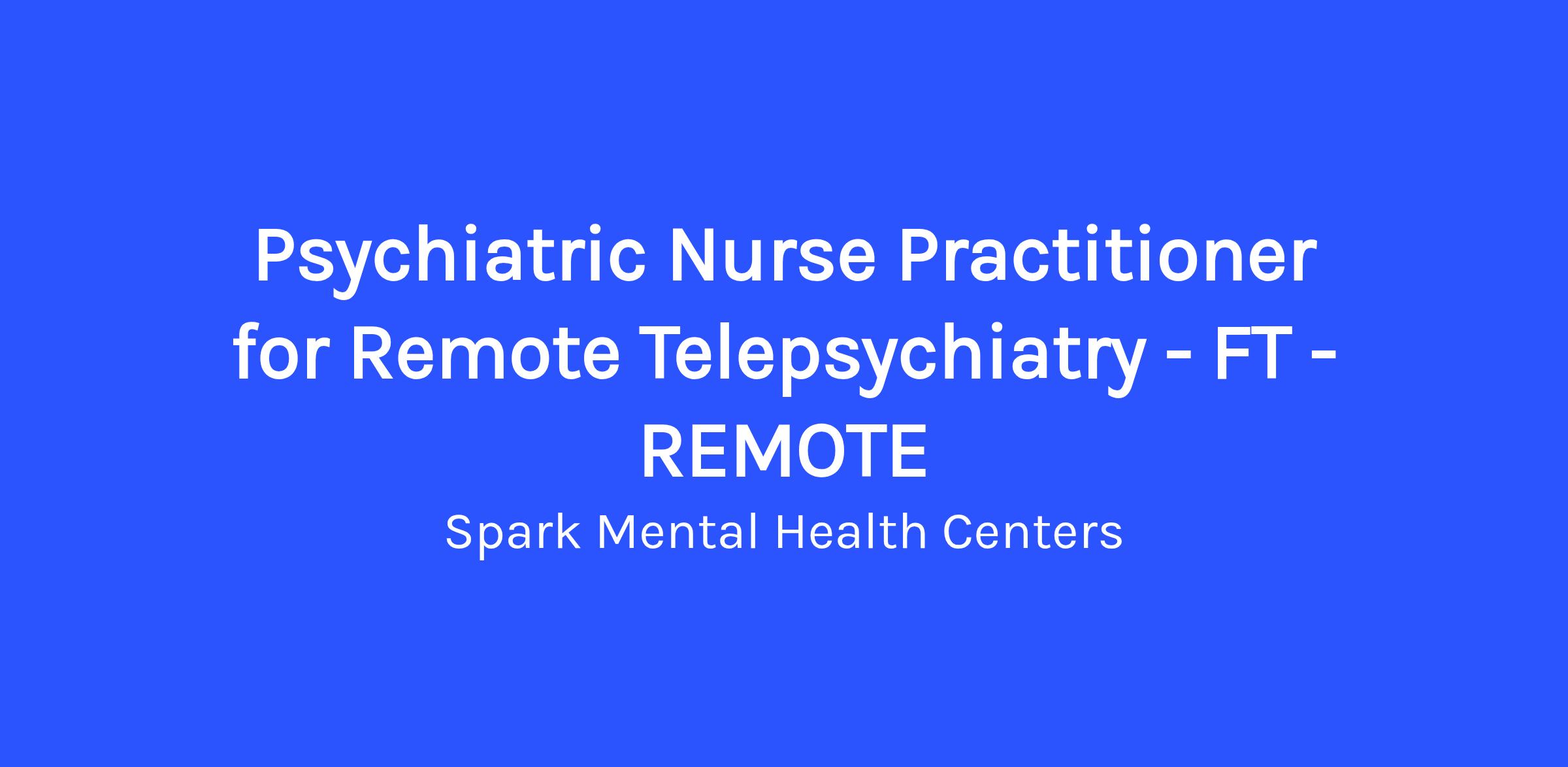 You will perform duties expected as a Psychiatric Nurse Practitioner (PMHNP) to evaluate, diagnose, medicate and managing treatment for Spark patients exclusively via Televideo.
