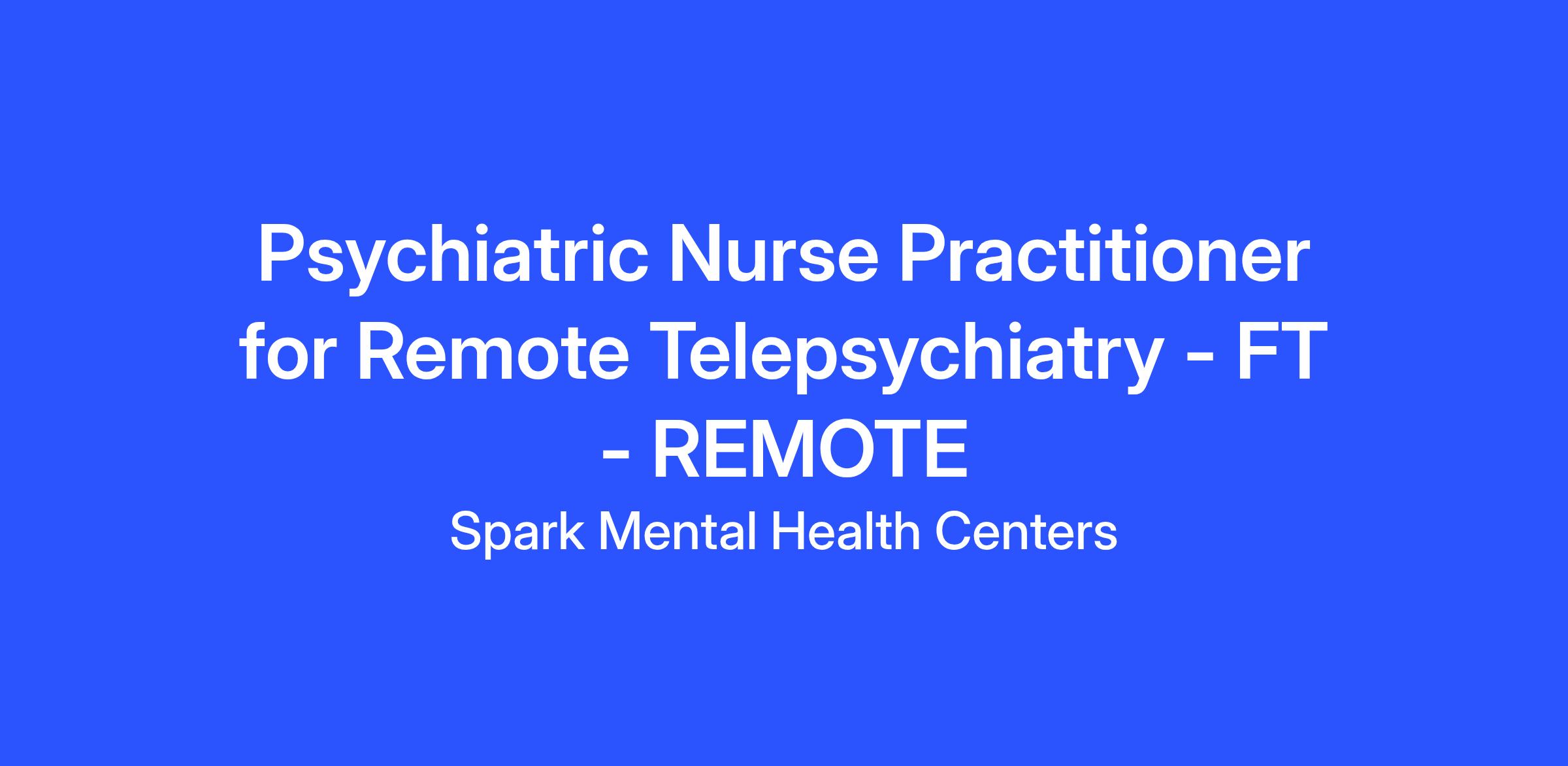 You will perform duties expected as a Psychiatric Nurse Practitioner (PMHNP) to evaluate, diagnose, medicate and managing treatment for Spark patients exclusively via Televideo.