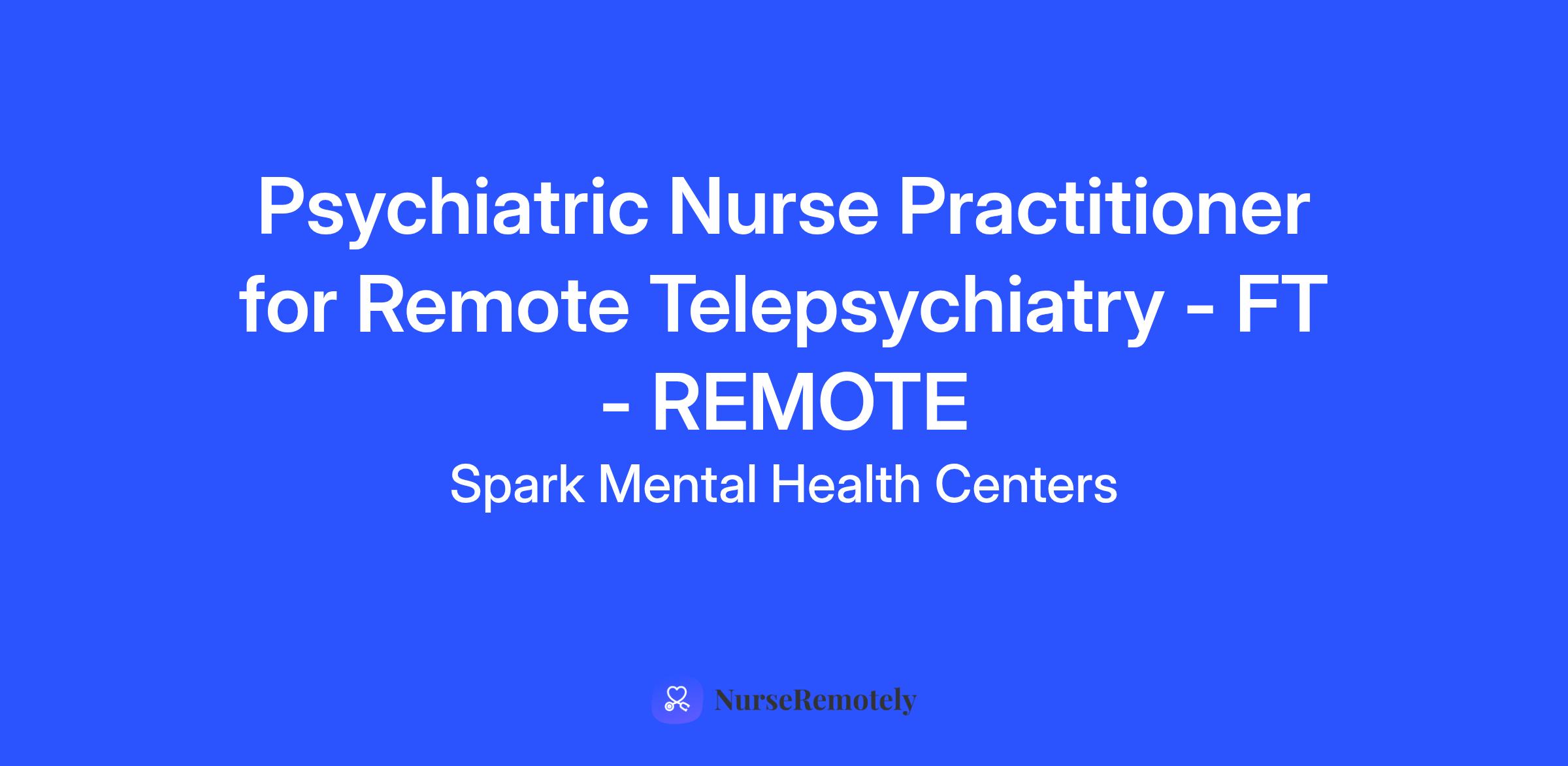 You will perform duties expected as a Psychiatric Nurse Practitioner (PMHNP) to evaluate, diagnose, medicate and managing treatment for Spark patients exclusively via Televideo.