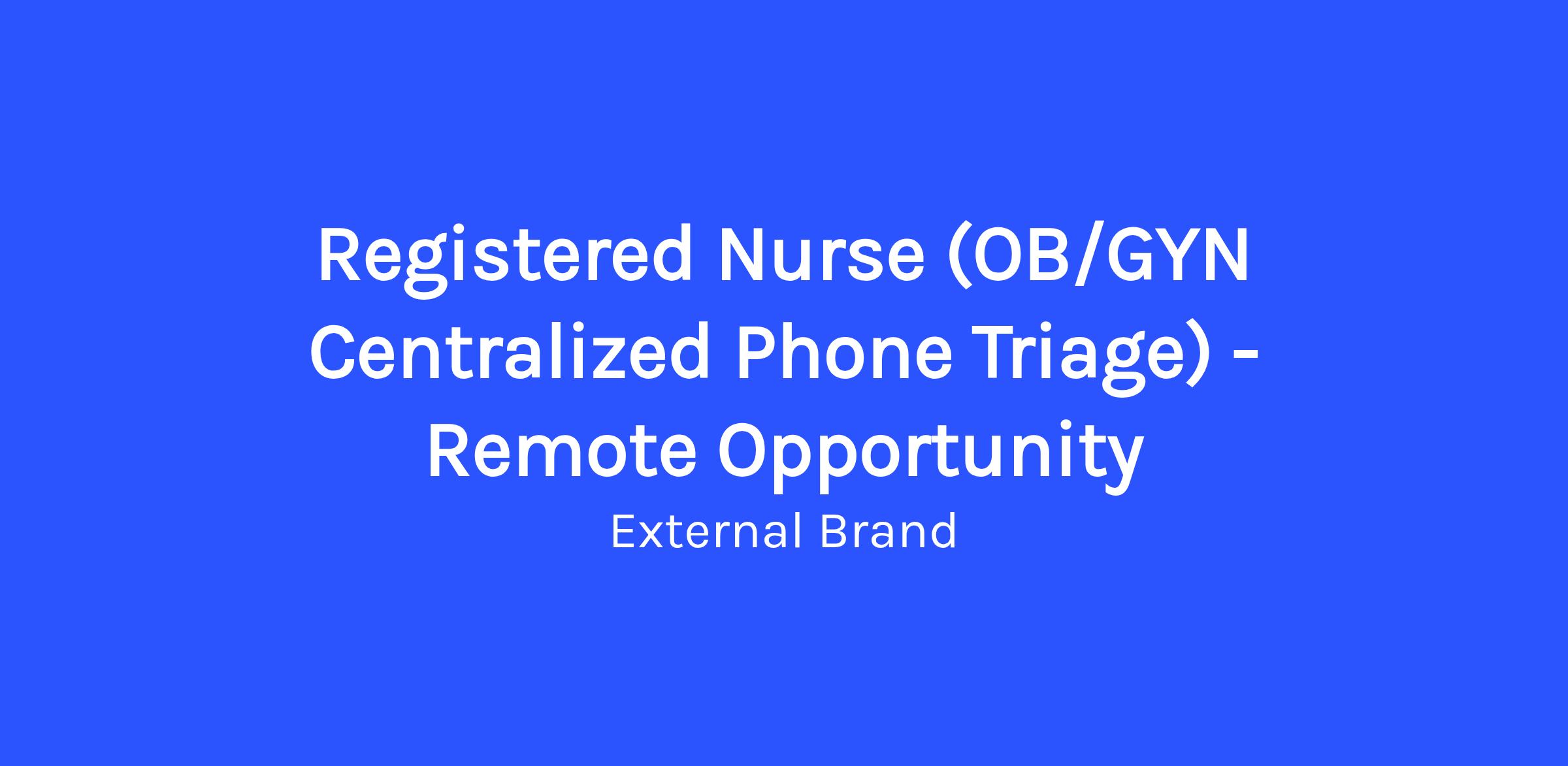 Required: One (1) or more years of RN experience or one (1) or more years of nursing experience working in triage.