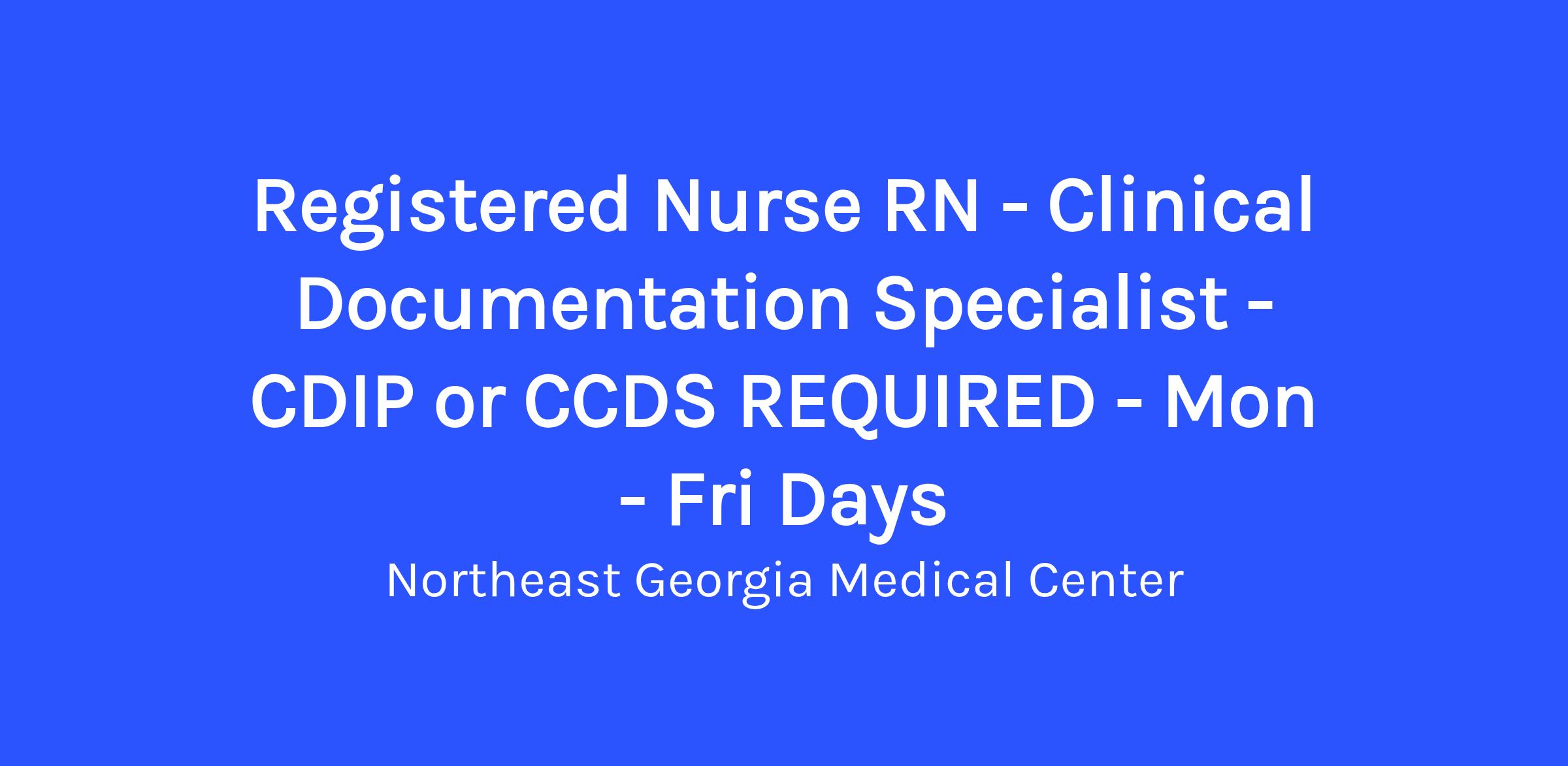 Registered Nurse RN - Clinical Documentation Specialist - CDIP or CCDS REQUIRED - Mon - Fri Days