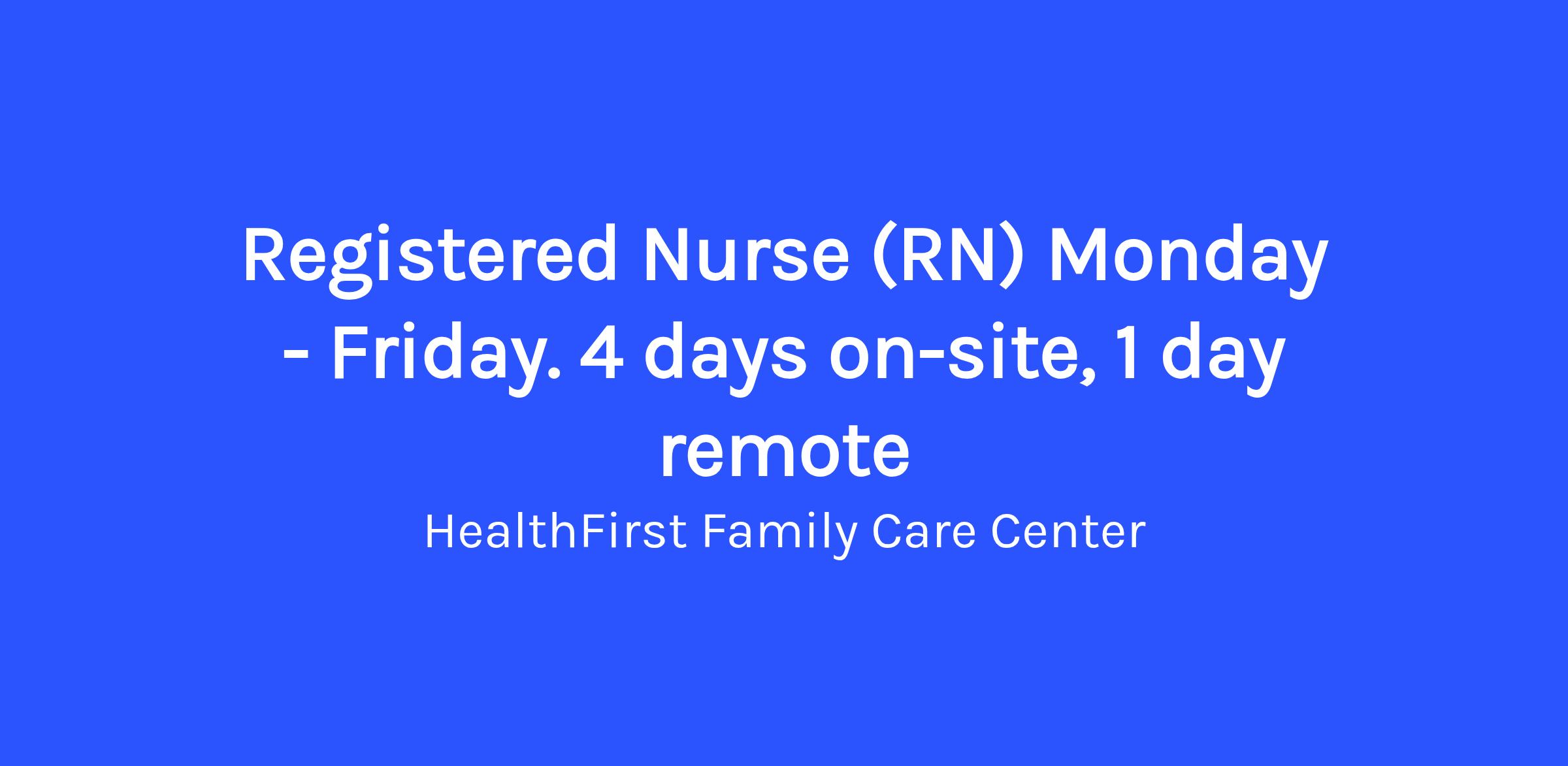 We are a mission-driven community health center serving patients across the Lakes Region, many of whom rely on us as their primary source of care. We’re seeking a compassionate, motivated Registered Nurse (RN) who is passionate about patient-centered care and eager to be part of a collaborative, supportive care team. You'll work a dream schedule of Monday through Friday, 8am-5pm, and no major holidays. After training, you will enjoy a schedule of being in the office for four days/week, and work from home one day/week, should you choose.