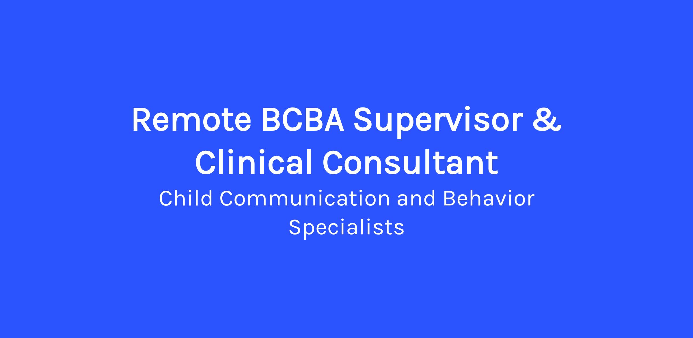 Remote BCBA Supervisor & Clinical Consultant — California