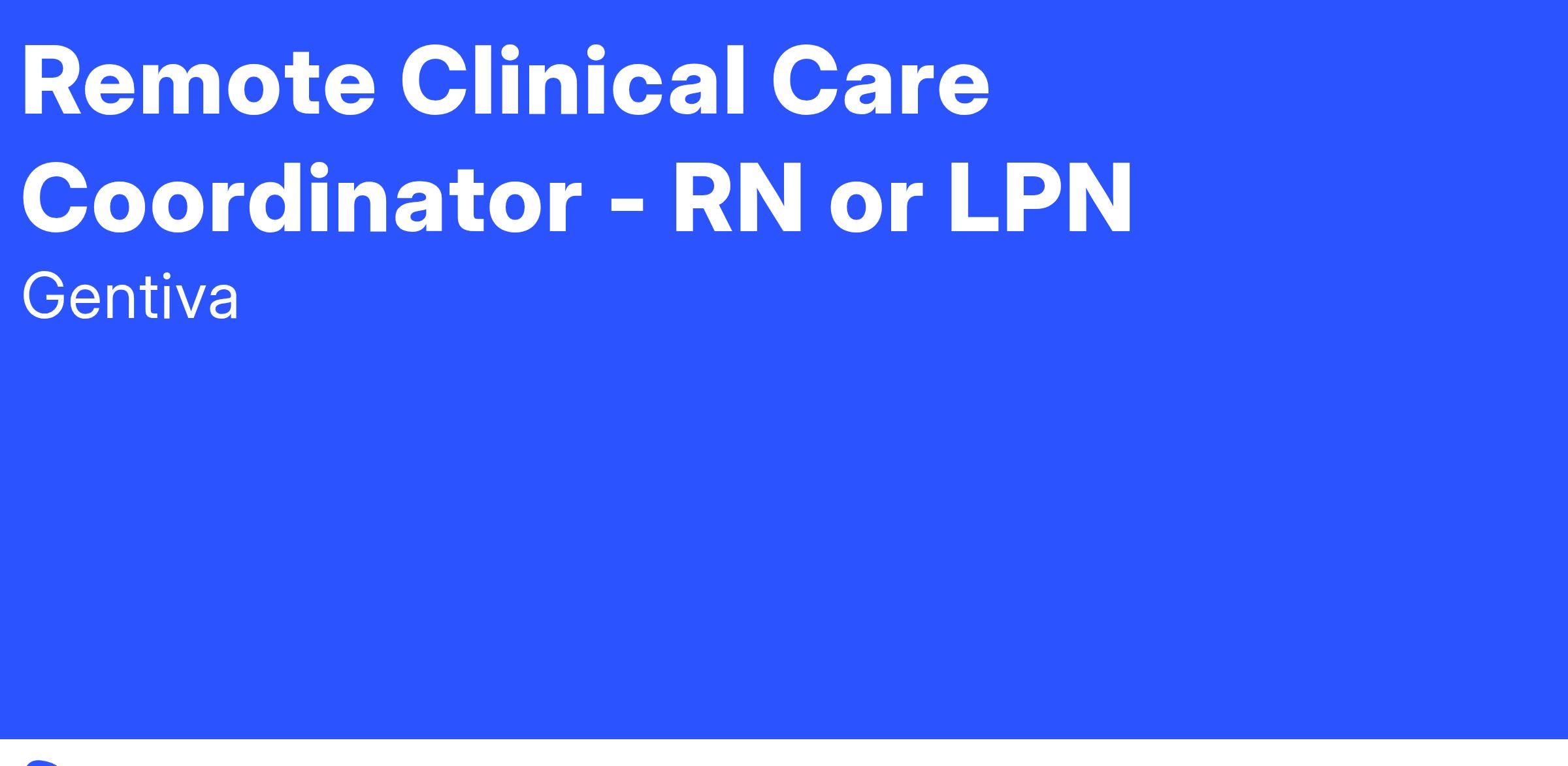 We are looking for a Remote Clinical Care Coordinator to join our team. This position will directly report to the Director Contact Center and is responsible for being highly knowledgeable regarding post-acute levels of care, and an expert regarding Gentiva services including home health, hospice, and palliative care.