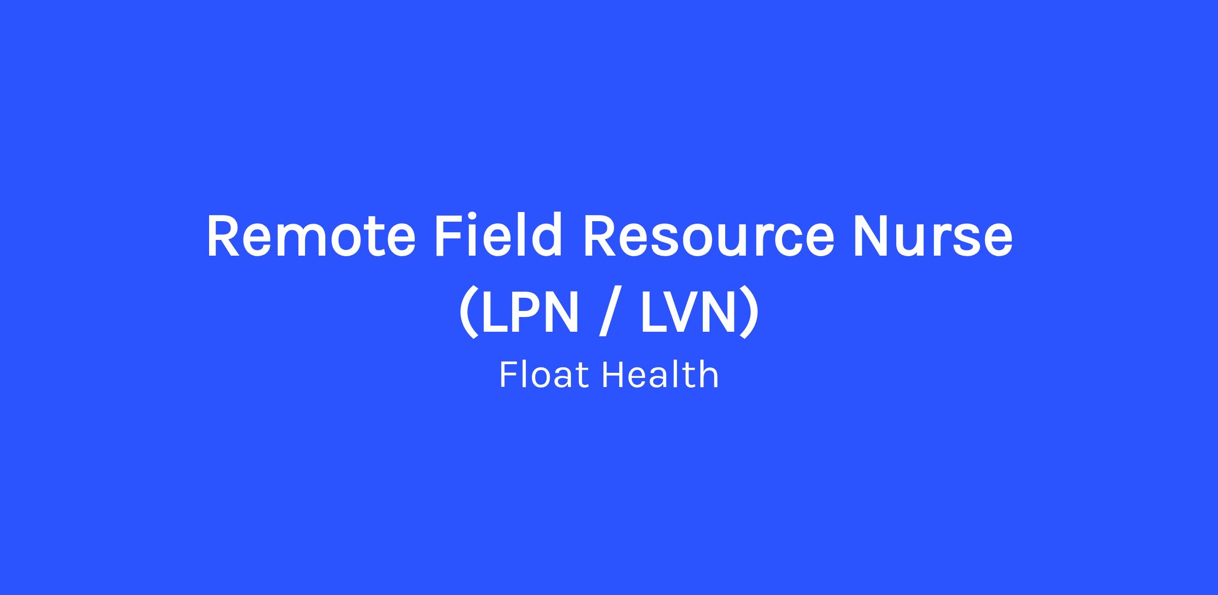 The Field Resource Nurse (LPN/LVN) is part of Float’s centralized Clinical Resource team. This role provides real-time phone support to independent contractor nurses in the field, helping them troubleshoot workflows, documentation, and therapy-related questions during active visits. You’ll be the first line of contact for Float’s field nurses, ensuring they feel supported, informed, and confident while providing patient care.