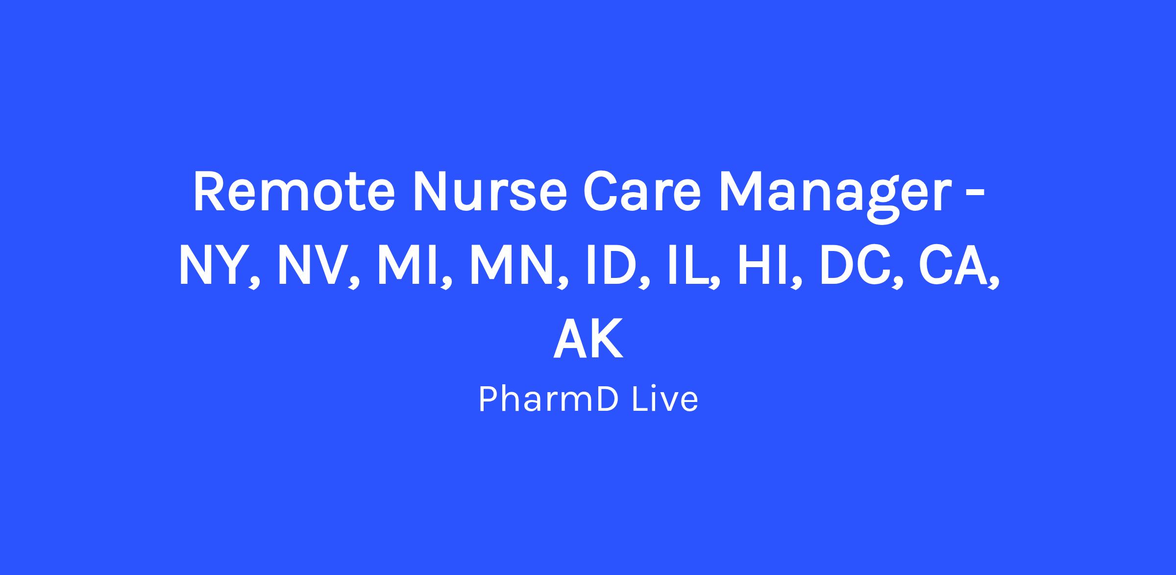 Remote Nurse Care Manager - NY, NV, MI, MN, ID, IL, HI, DC, CA, AK