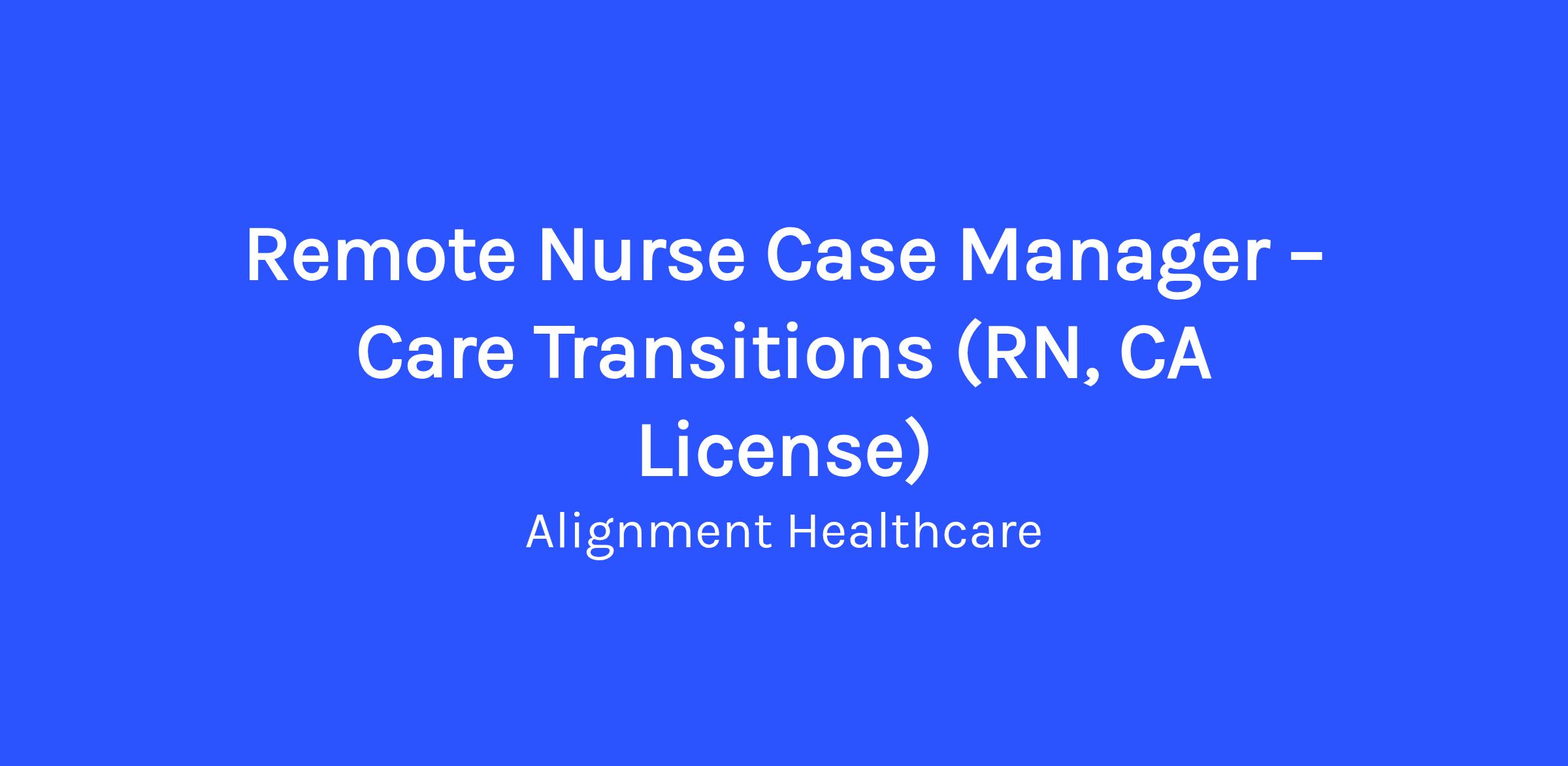 Remote - The Case Manager – Transitions of Care (Outpatient)Are you a California-licensed RN passionate about guiding patients through safe, seamless care transitions? Join our team as a Remote Case Manager, where you’ll make a direct impact on patient outcomes by coordinating discharge planning, referrals, and community resources.