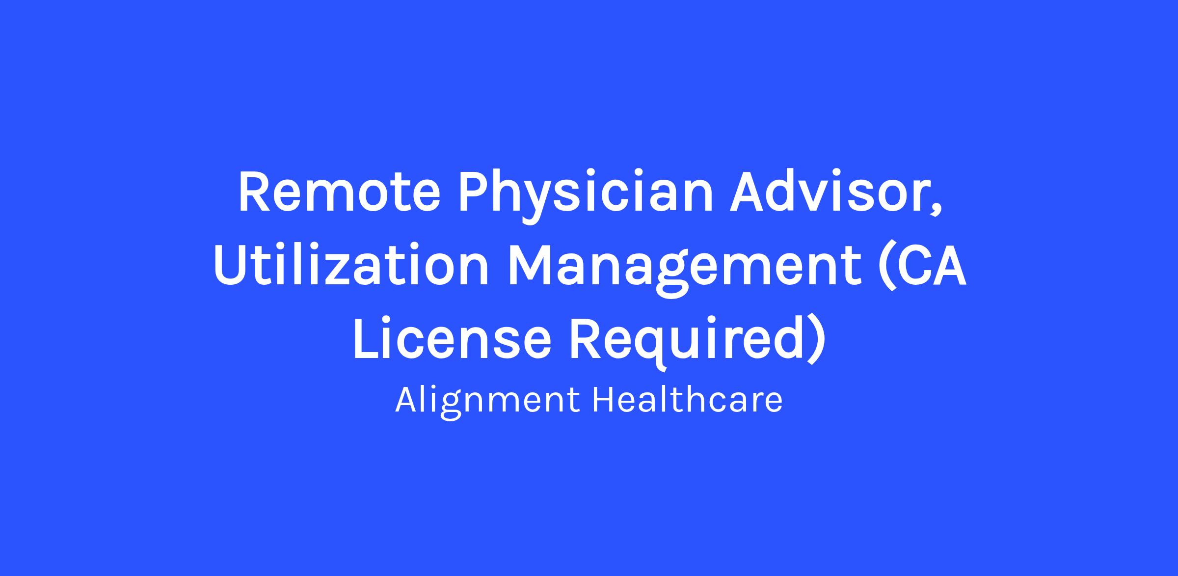 • Preferred: Experience as a Physician Advisor a plus