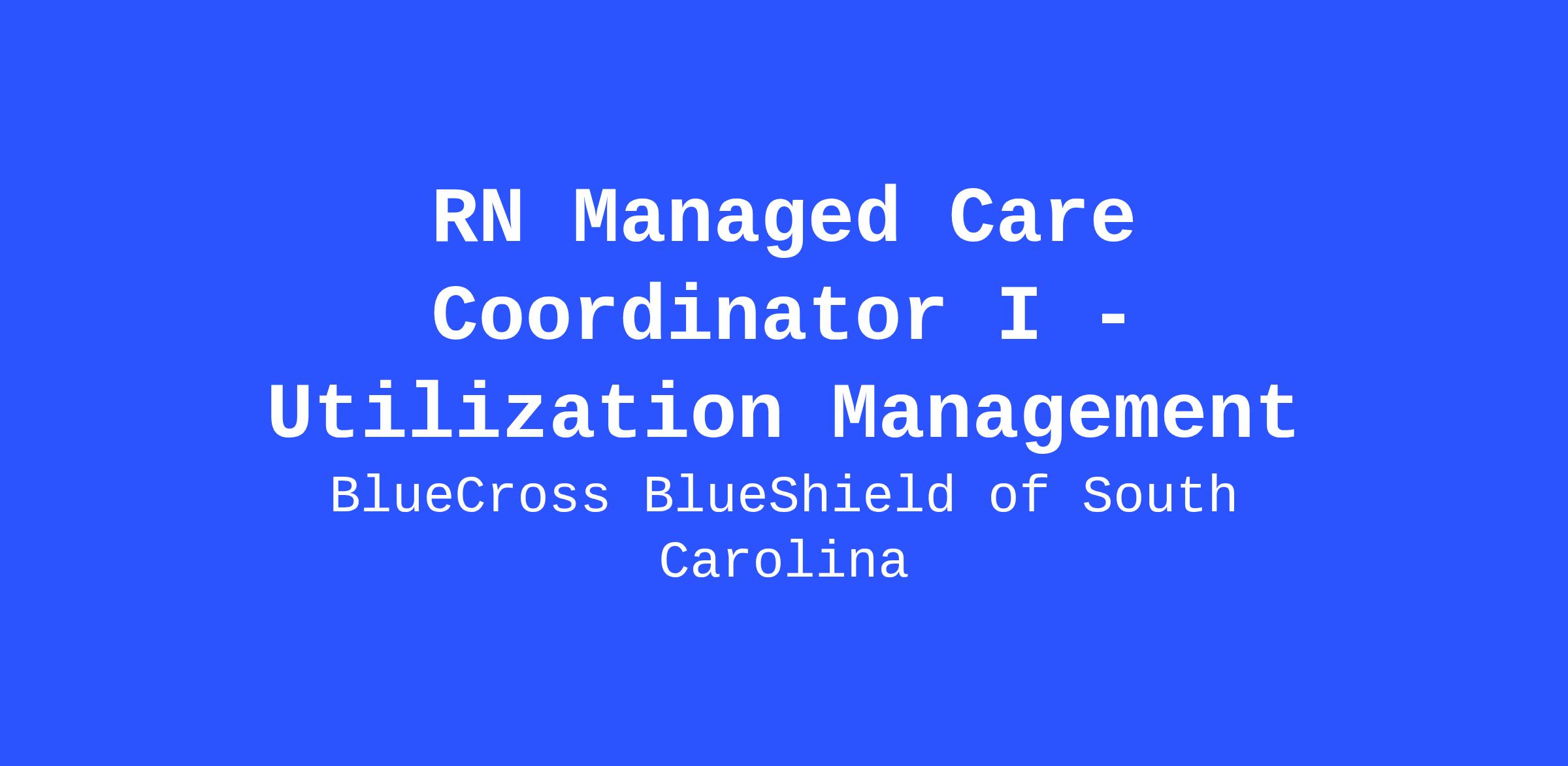 We are currently hiring for a Managed Care Coordinator I to join BlueCross BlueShield of South Carolina. In this role as a Managed Care Coordinator I, you will review and evaluate medical or behavioral eligibility regarding benefits and clinical criteria by applying clinical expertise, administrative policies, and established clinical criteria to service requests. Utilizes clinical proficiency and claims knowledge/analysis to assess, plan, implement, coordinate, monitor, and evaluate medical necessity and/or care plan compliance, options, and services required to support members in managing their health, chronic illness, or acute illness. Utilizes available resources to promote quality, cost effective outcomes.