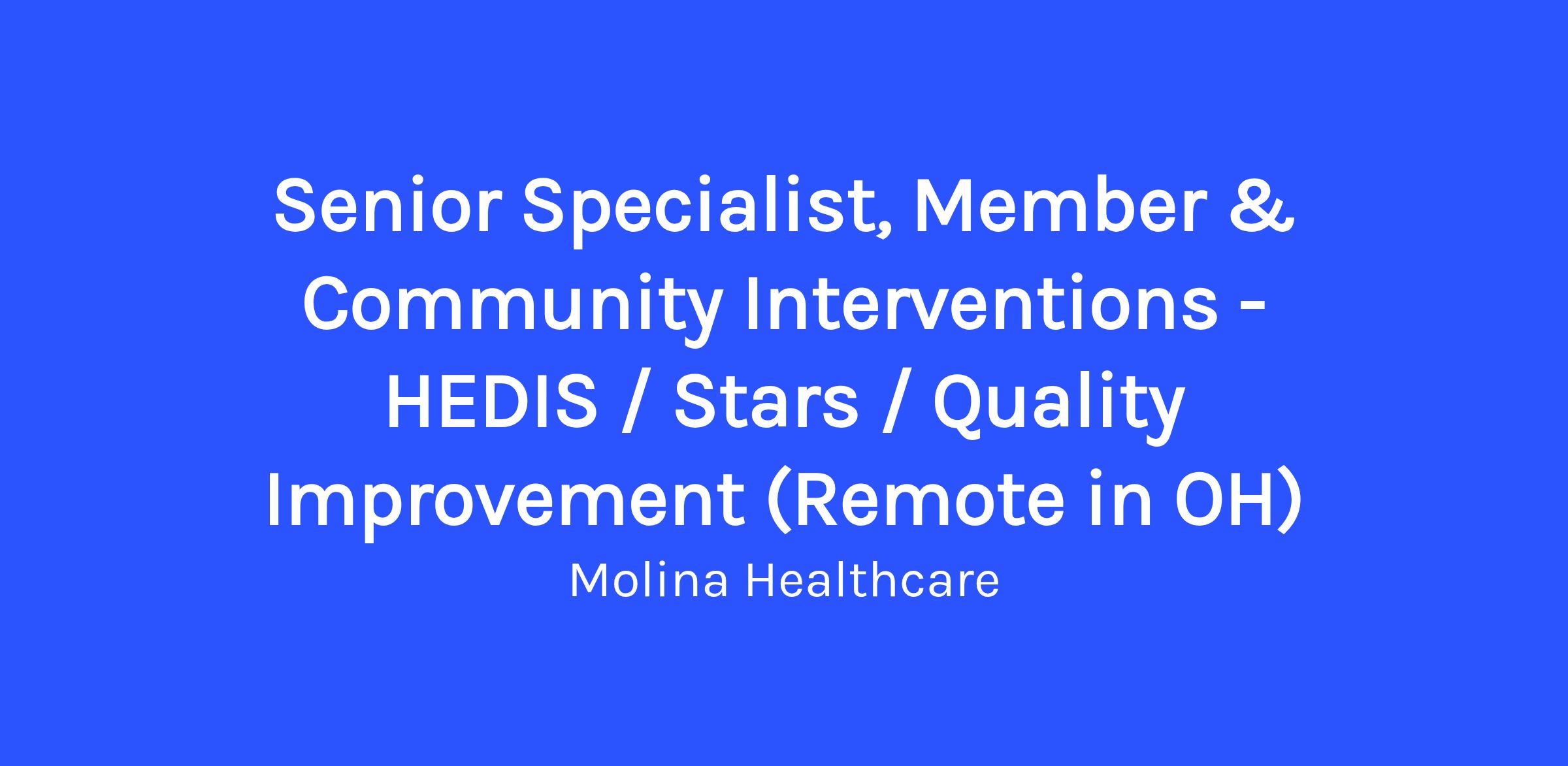 Please make sure to update your resume with any previous HEDIS/Quality Improvement and/or Medicare Stars experience. We look forward to reviewing!