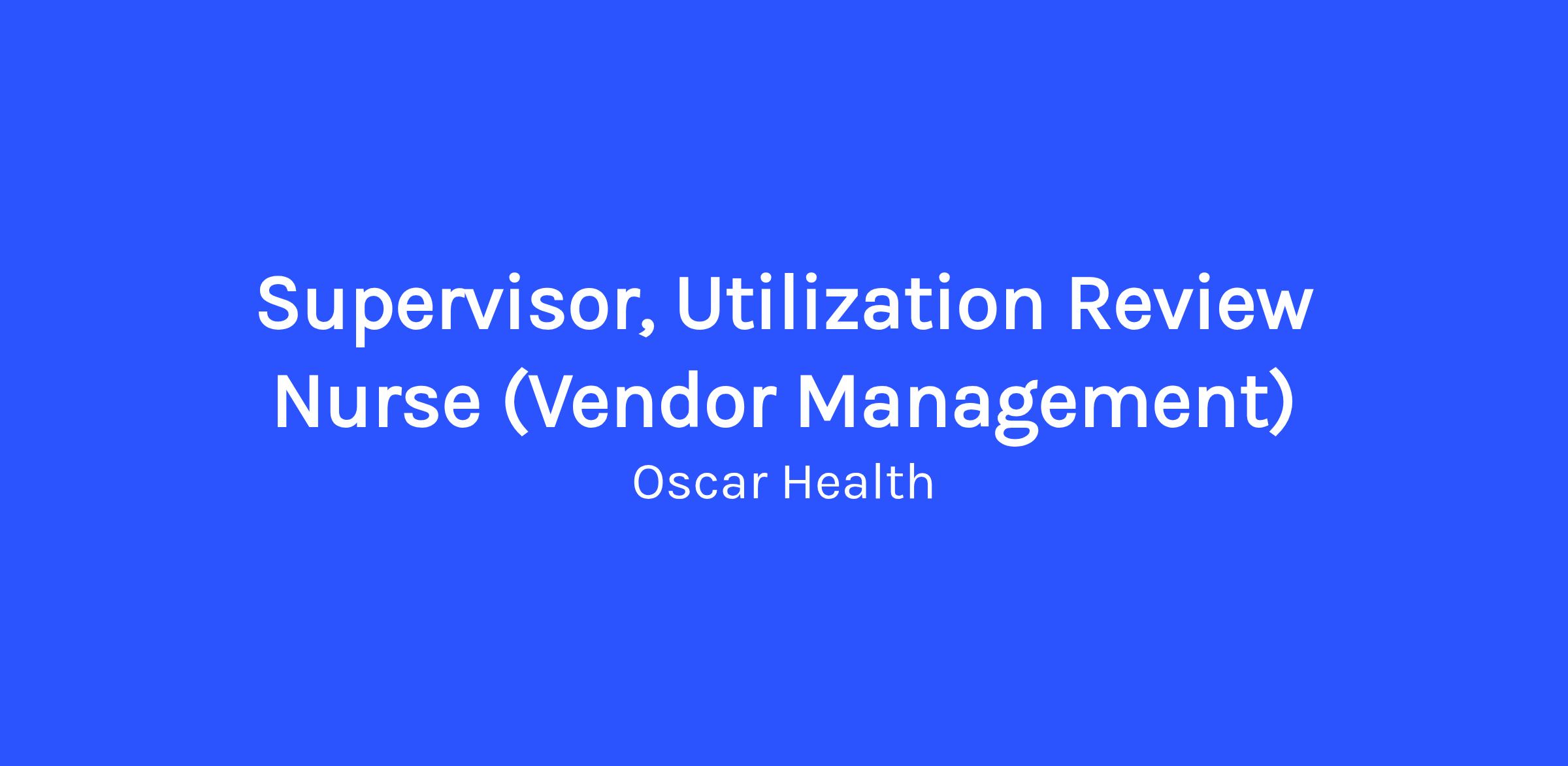 Hi, we're Oscar. We're hiring a Supervisor, Utilization Review Nurse (Vendor Management) to join our team.