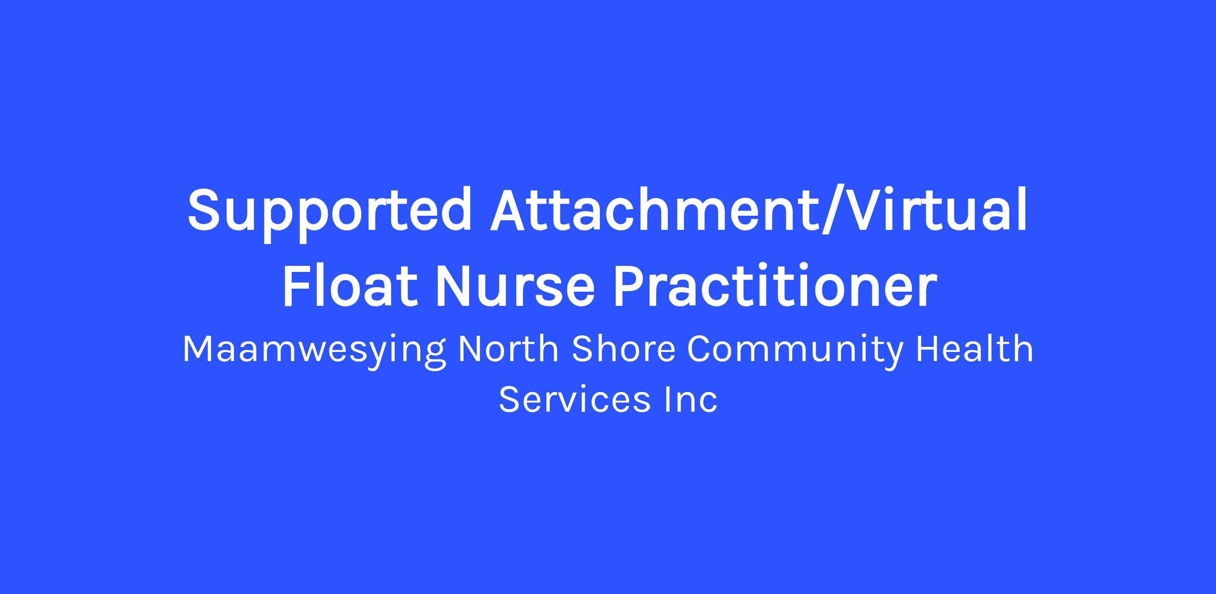 The opportunity: As a key member of Maamwesying North Shore Community Health Services Inc., the Supported Attachment / Virtual Float Nurse Practitioner (NP) is an integral part of an interdisciplinary health care team.  This NP role combines two core responsibilities: