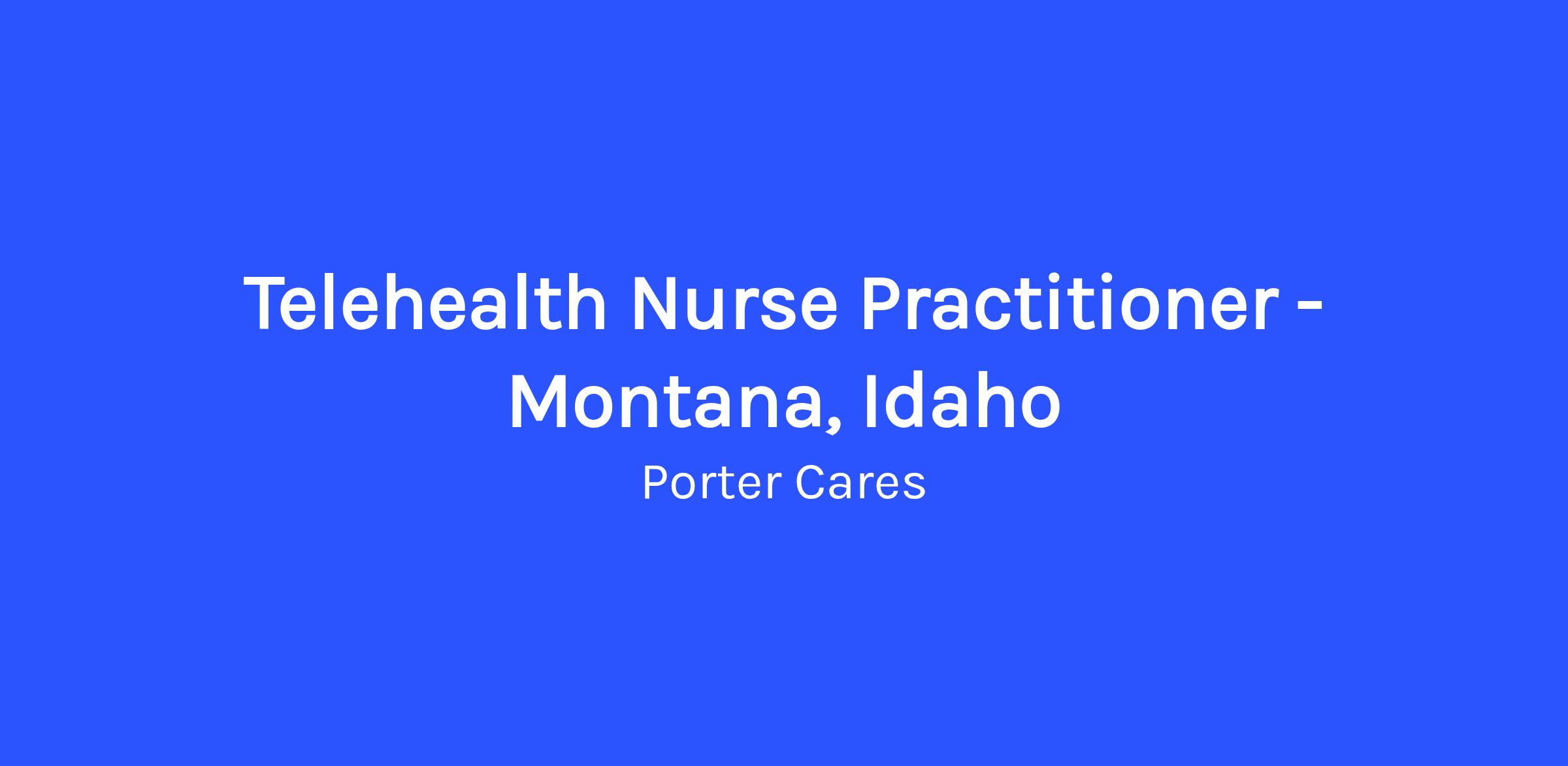 Porter is expanding and looking for Nurse Practitioners who are licensed in Montana and Idaho!