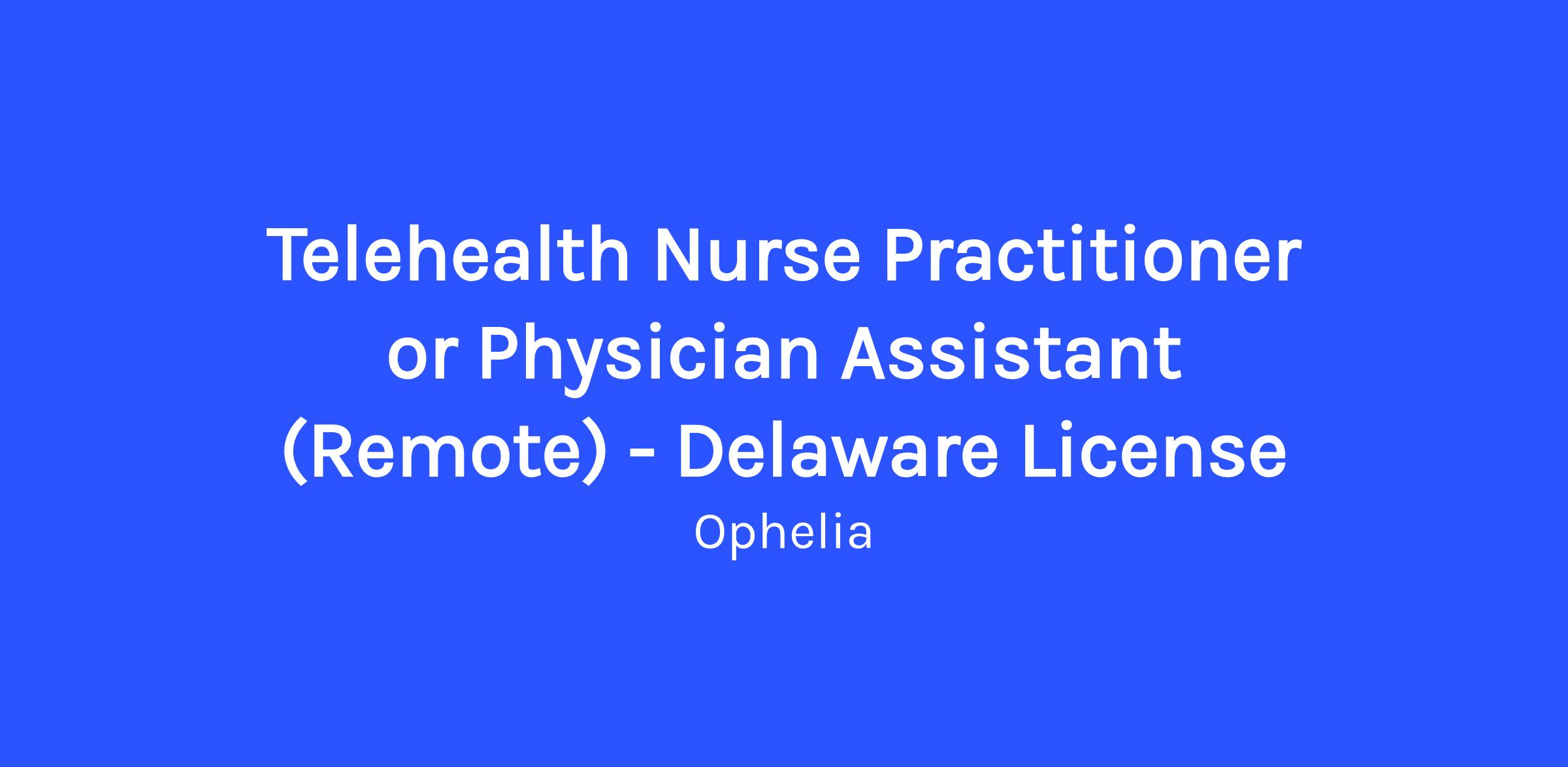 - Active DEA license (schedule 3N, 4, 5) or willingness to obtain a DEA upon receiving a job offer with Ophelia