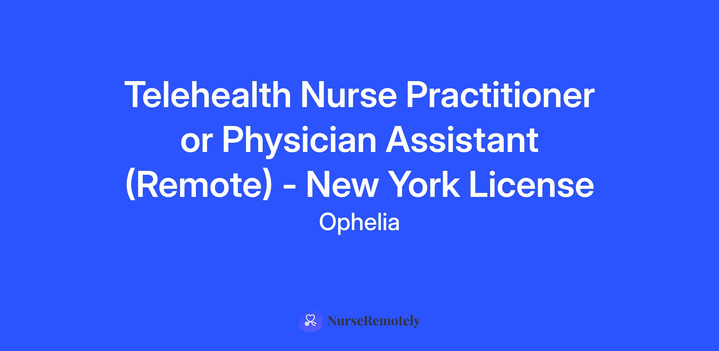 - Active DEA license (schedule 3N, 4, 5) or willingness to obtain a DEA upon receiving a job offer with Ophelia