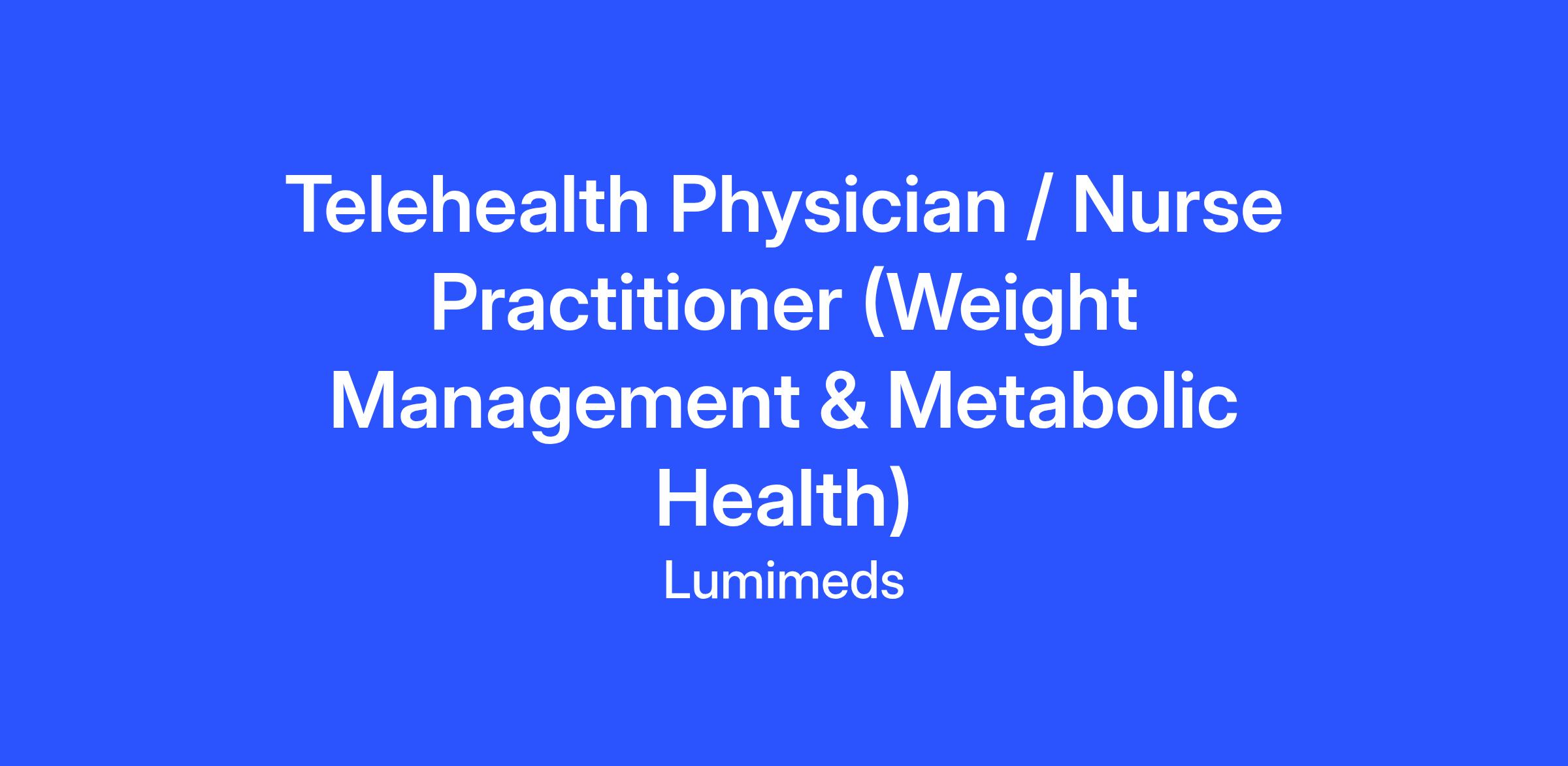LumiMeds is a fast-growing telehealth company focused on weight management and long-term metabolic health. We deliver patient-centered, provider-guided care through a modern virtual platform, combining clinical oversight with strong operational support.