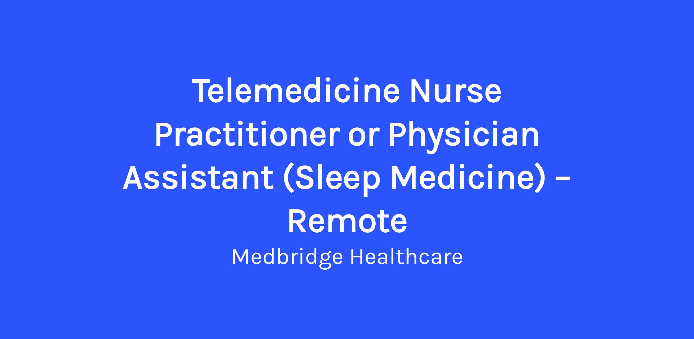 ⭐ Telemedicine Nurse Practitioner or Physician Assistant (Sleep Medicine) – Remote ⭐