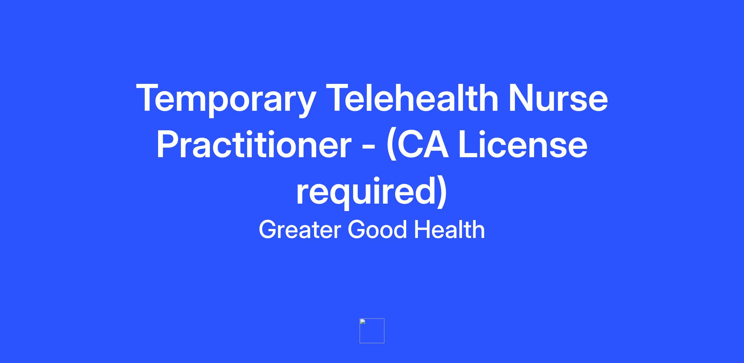 Job Title: Contract Telehealth Nurse Practitioner - must have CA license & DEA