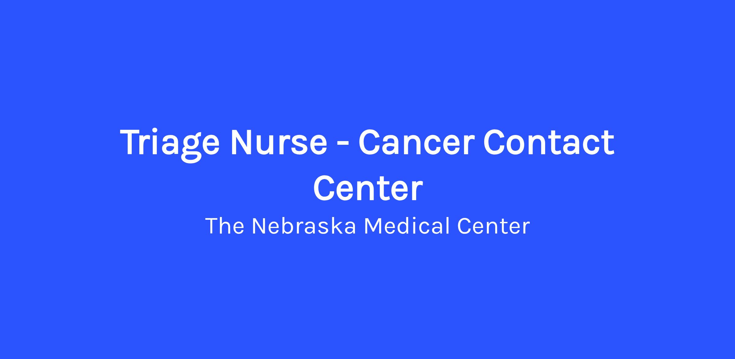 Nebraska Medicine is seeking an experienced Triage RN to join the Cancer Contact Center Team, this role is located in Omaha, NE. The Triage RN will be responsible for telephone triage, care coordinator, and patient education focused on providing exceptional care through multidisciplinary collaboration.