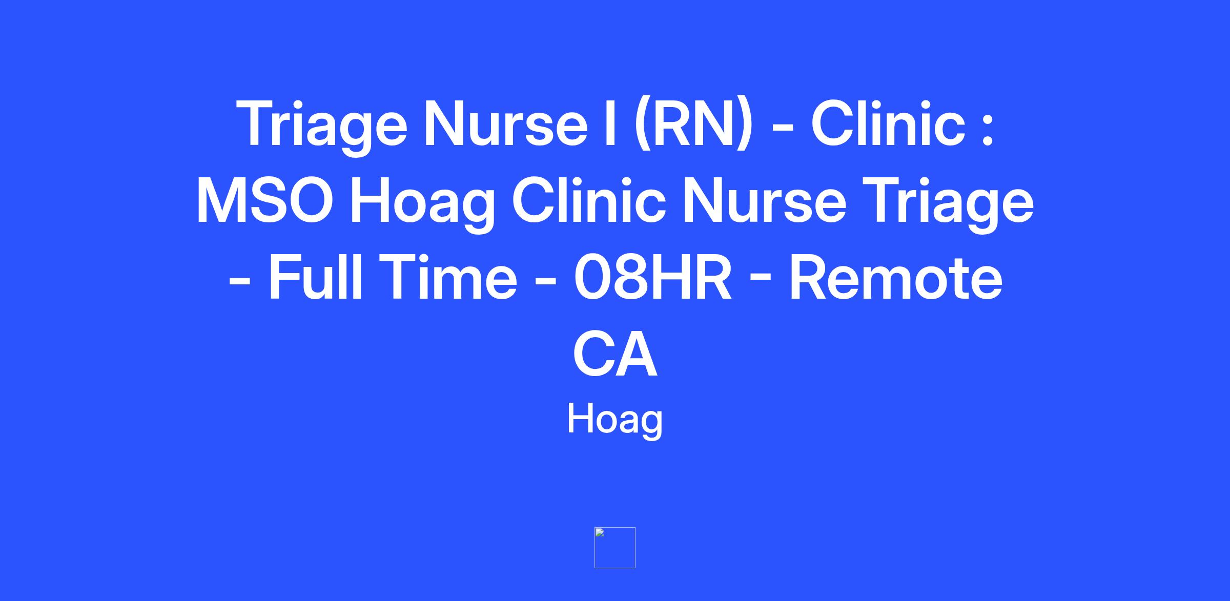 The Triage Nurse I provides professional telephone triage nursing services to Hoag Clinic patients. This role performs detailed evaluation of patient symptoms and determines urgency of patient condition, facilitates next steps in patient care, makes recommendations for escalation of care, and provides appropriate medical advice on treating symptoms. Provides patient education and incorporates available education material. Communicates changes in patient condition to health care provider. Responses to emergency situations. Collaborates with other members of the health care team to ensure quality patient care and confer when facing ethical and legal issues. Documents all nursing services provided in the patient record. Utilizes the nursing process based on research and evidence-based outcomes to meet patient care needs. Facilitates appropriate utilization of healthcare resources. Enhances the patient experience. Provides services in compliance with all applicable regulatory and professional standards, including the California Nurse Practice Act. Performs other duties as assigned.